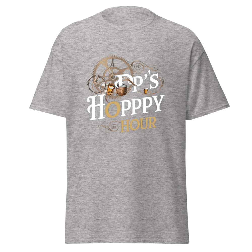 Dive into nostalgia with this unique design featuring vintage clockwork gears intertwined with playful beer elements. Perfect for beer enthusiasts looking to celebrate the timeless moments of Pop’s Hoppy Hour.This t-shirt is everything you’ve dreamed of and more. It feels soft and lightweight, with the right amount of stretch. It’s comfortable and flattering for all. 100% combed and ring-spun cotton (Heather colors contain polyester) Fabric weight: 4.2 oz./yd.² (142 g/m²) Pre-shrunk fabric Side-seamed construction Shoulder-to-shoulder taping