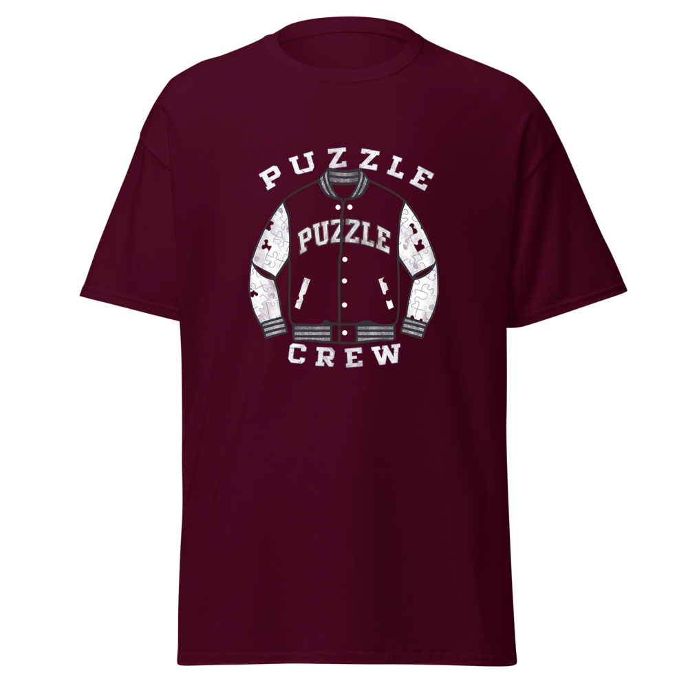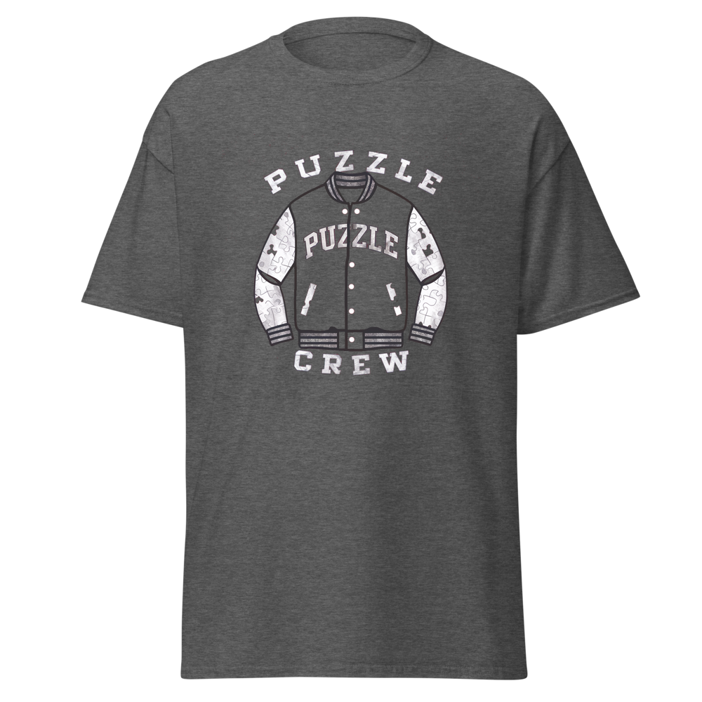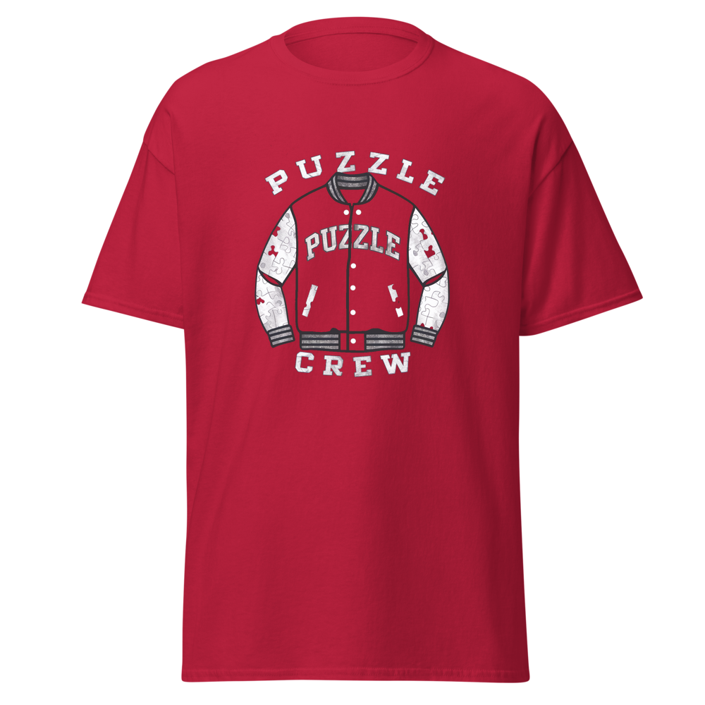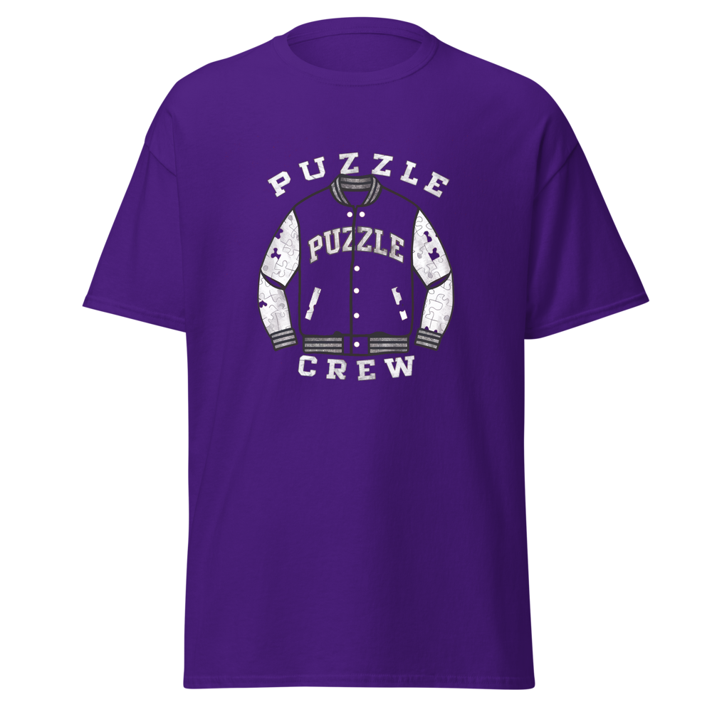 Step back in time with our retro-inspired “Puzzle Crew” t-shirt, featuring cool 80s letterman jacket designs with uniquely vintage puzzle logos. Perfect for puzzle enthusiasts and seniors alike, this unisex shirt combines nostalgia with style.This t-shirt is everything you’ve dreamed of and more. It feels soft and lightweight, with the right amount of stretch. It’s comfortable and flattering for all. 100% combed and ring-spun cotton (Heather colors contain polyester) Fabric weight: 4.2 oz./yd.² (142 g/m²) Pre-shrunk fabric Side-seamed construction Shoulder-to-shoulder taping