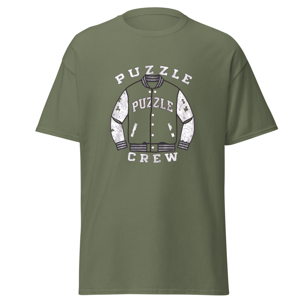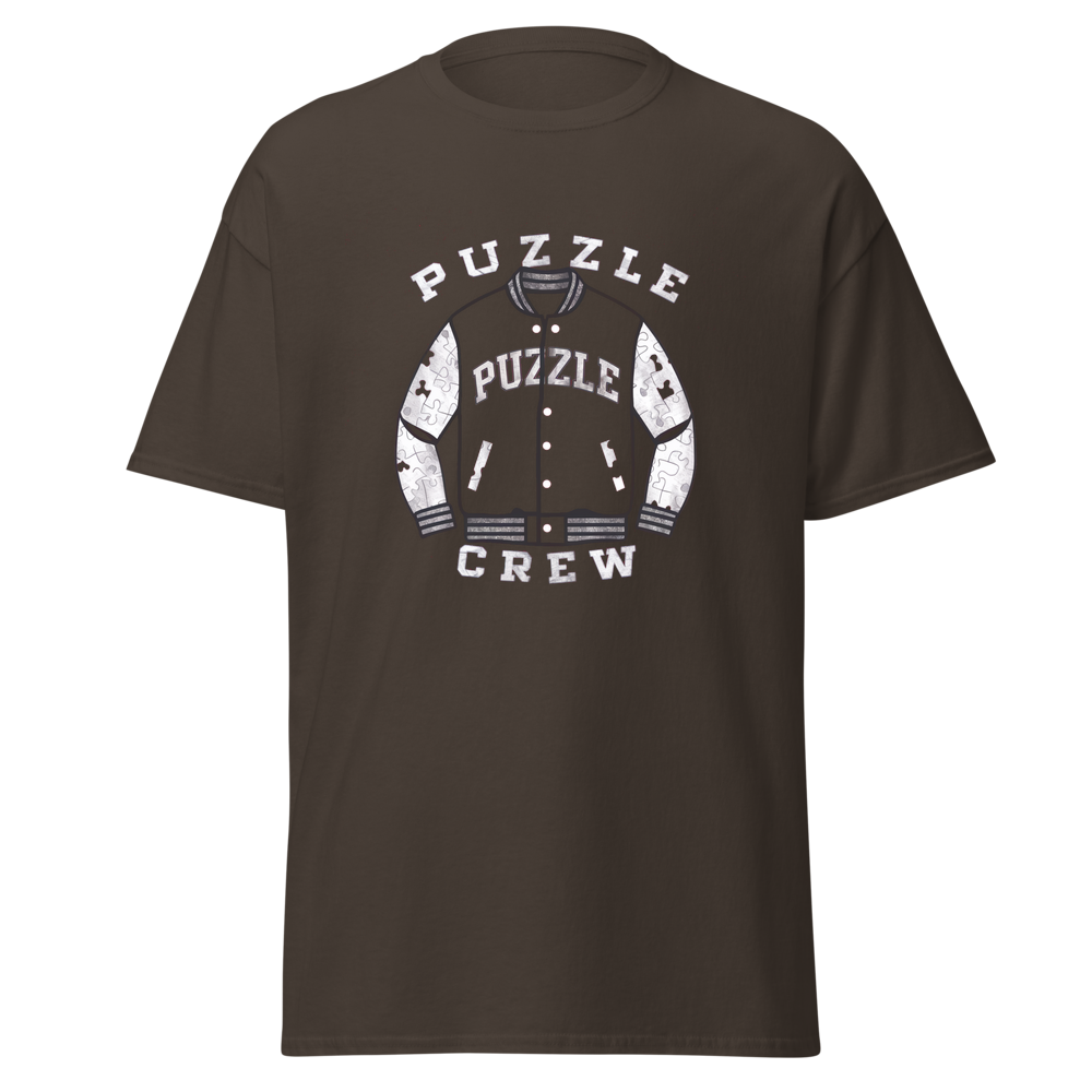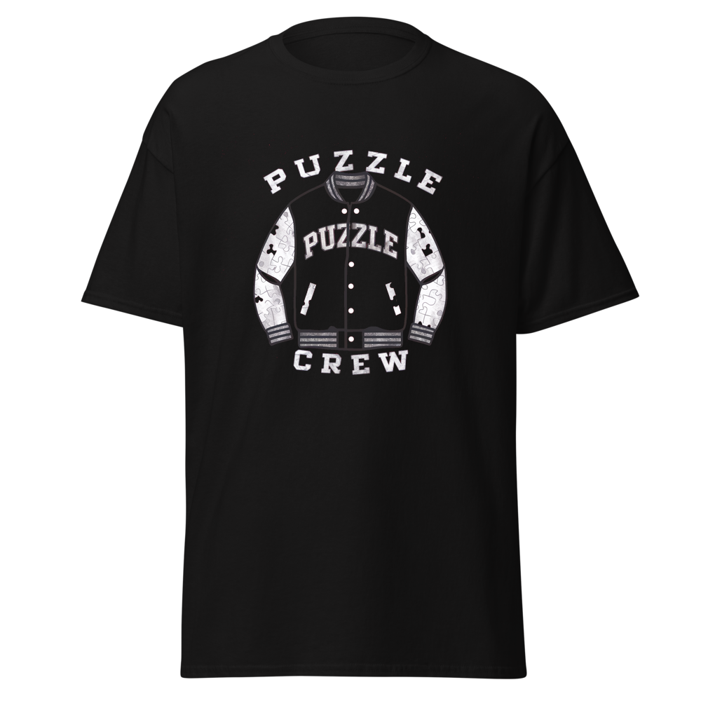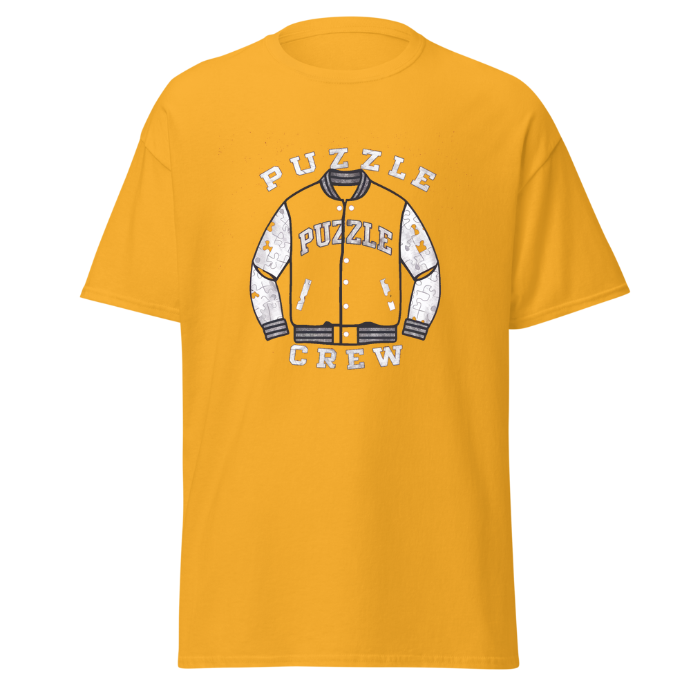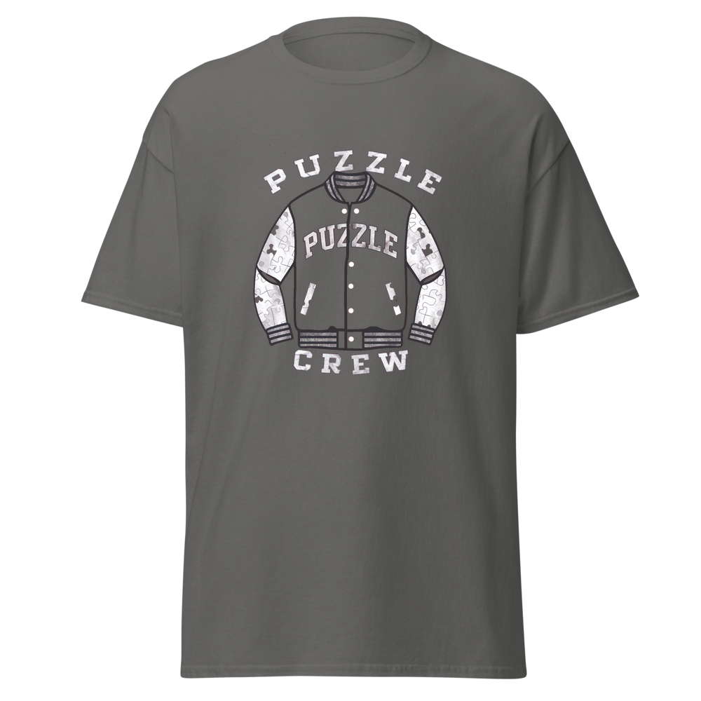 Step back in time with our retro-inspired “Puzzle Crew” t-shirt, featuring cool 80s letterman jacket designs with uniquely vintage puzzle logos. Perfect for puzzle enthusiasts and seniors alike, this unisex shirt combines nostalgia with style.This t-shirt is everything you’ve dreamed of and more. It feels soft and lightweight, with the right amount of stretch. It’s comfortable and flattering for all. 100% combed and ring-spun cotton (Heather colors contain polyester) Fabric weight: 4.2 oz./yd.² (142 g/m²) Pre-shrunk fabric Side-seamed construction Shoulder-to-shoulder taping