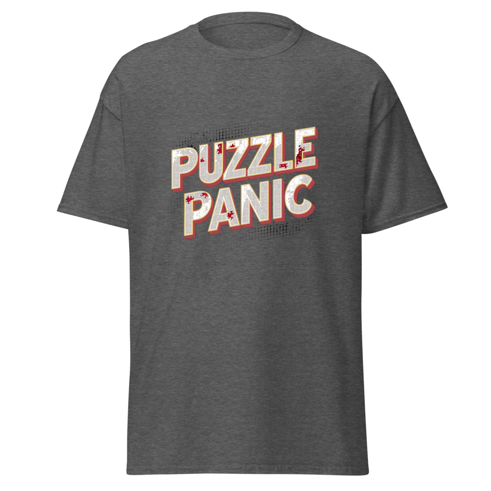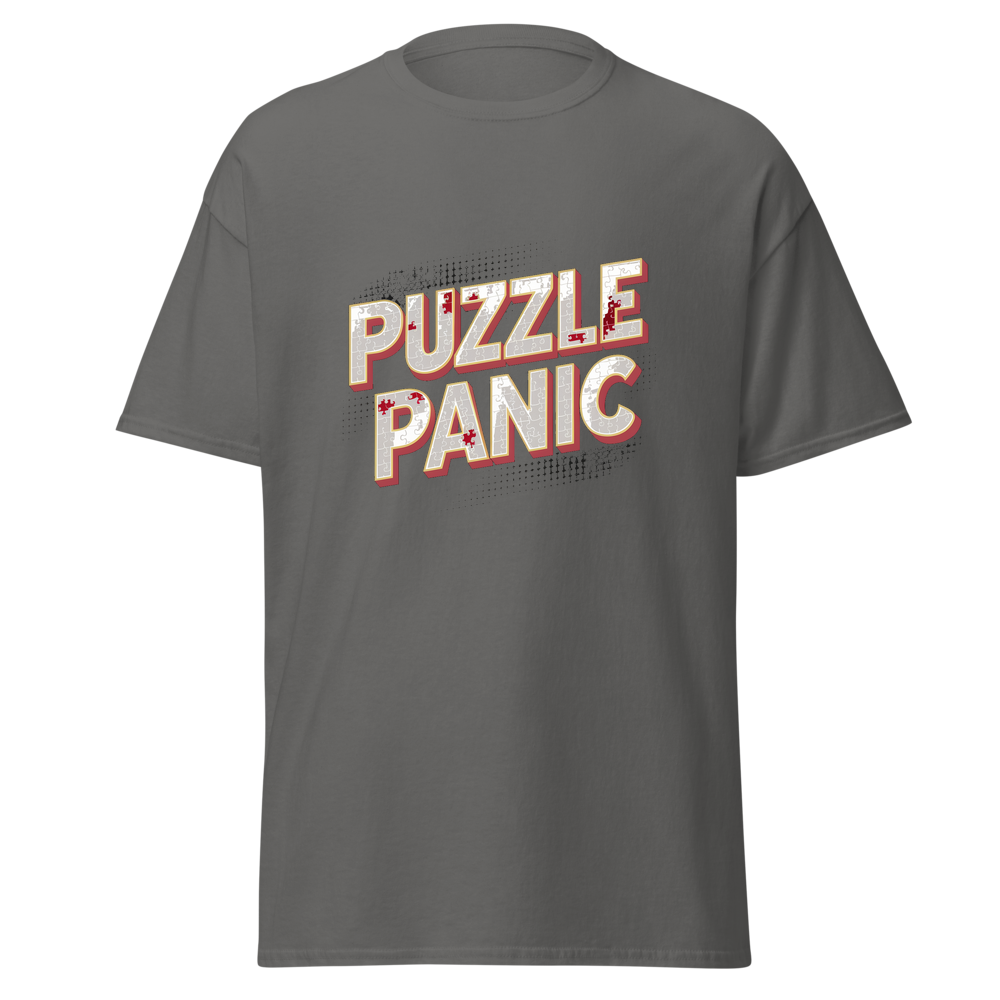 A throwback to classic 80s thriller vibes, this design features fragmented scenes of chaos intertwined with puzzle pieces. The retro 70s horror font adds an extra layer of nostalgia, making it a perfect pick for puzzle enthusiasts and fans of vintage movie aesthetics.This t-shirt is everything you’ve dreamed of and more. It feels soft and lightweight, with the right amount of stretch. It’s comfortable and flattering for all. 100% combed and ring-spun cotton (Heather colors contain polyester) Fabric weight: 4.2 oz./yd.² (142 g/m²) Pre-shrunk fabric Side-seamed construction Shoulder-to-shoulder taping