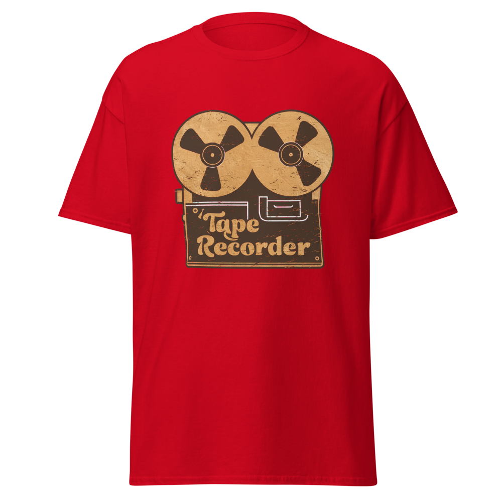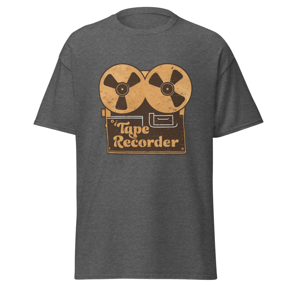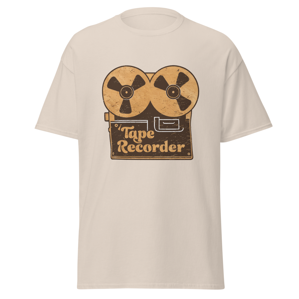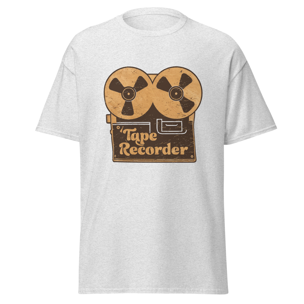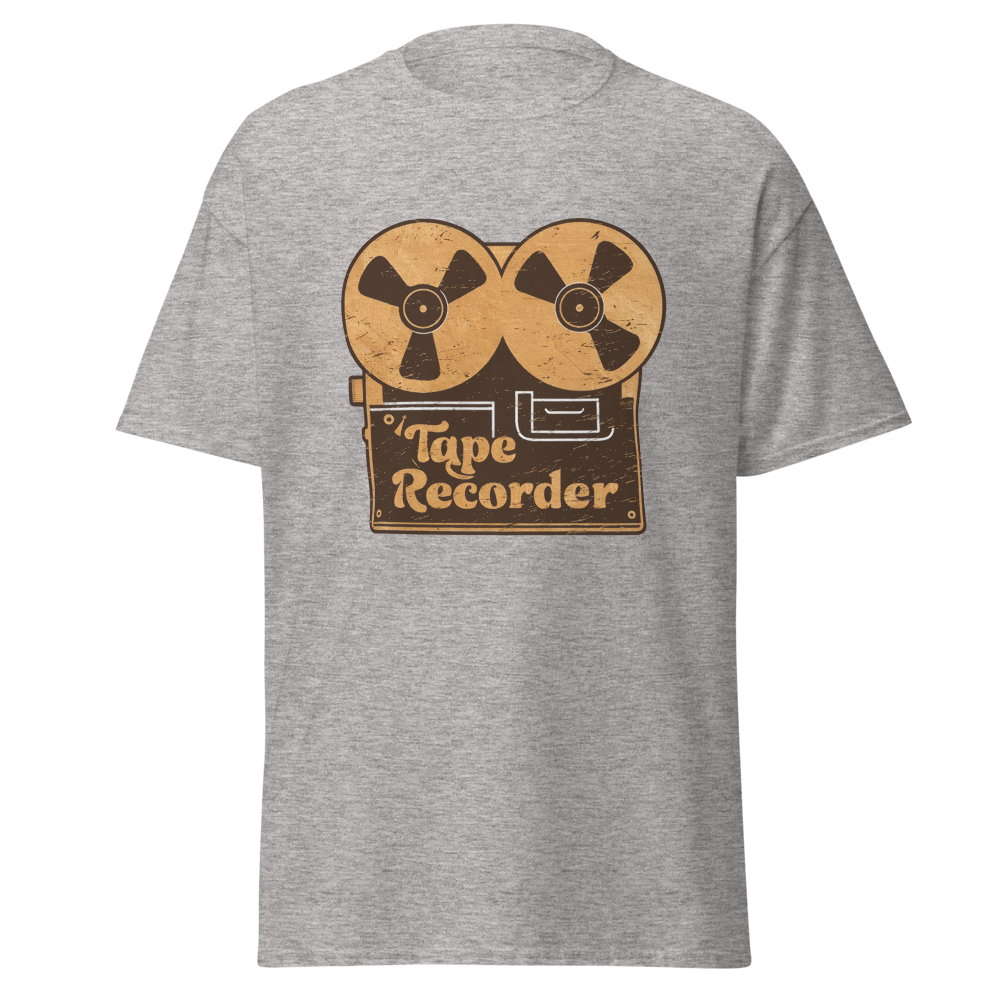 Featuring a bold graphic of a vintage reel-to-reel tape recorder with a stylish distressed finish, this shirt is perfect for those who appreciate old school technology and retro vibes. Ideal for young adults who love to mix nostalgia with modern fashion.This t-shirt is everything you’ve dreamed of and more. It feels soft and lightweight, with the right amount of stretch. It’s comfortable and flattering for all. 100% combed and ring-spun cotton (Heather colors contain polyester) Fabric weight: 4.2 oz./yd.² (142 g/m²) Pre-shrunk fabric Side-seamed construction Shoulder-to-shoulder taping