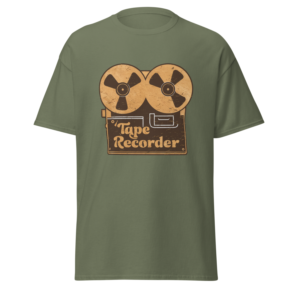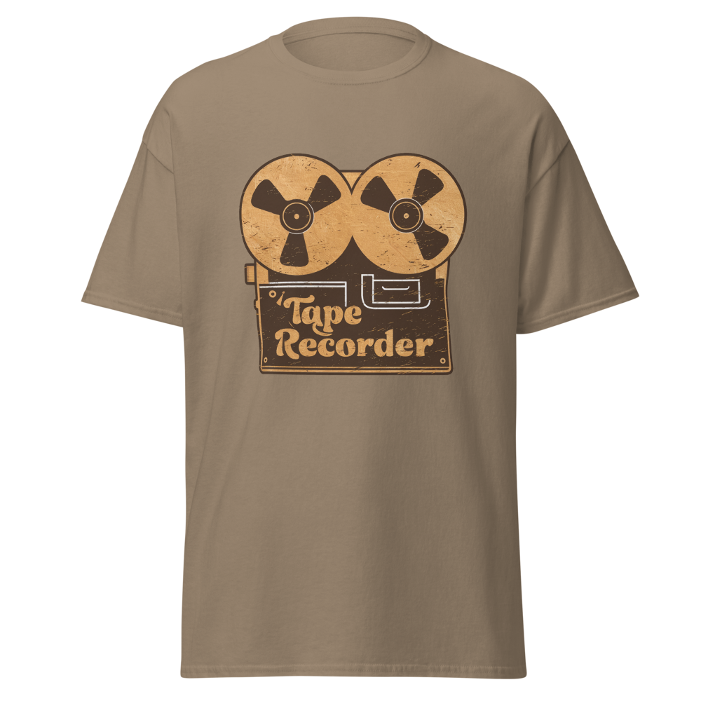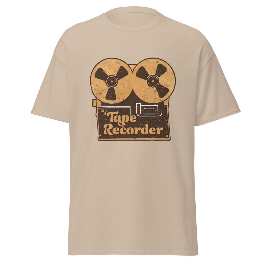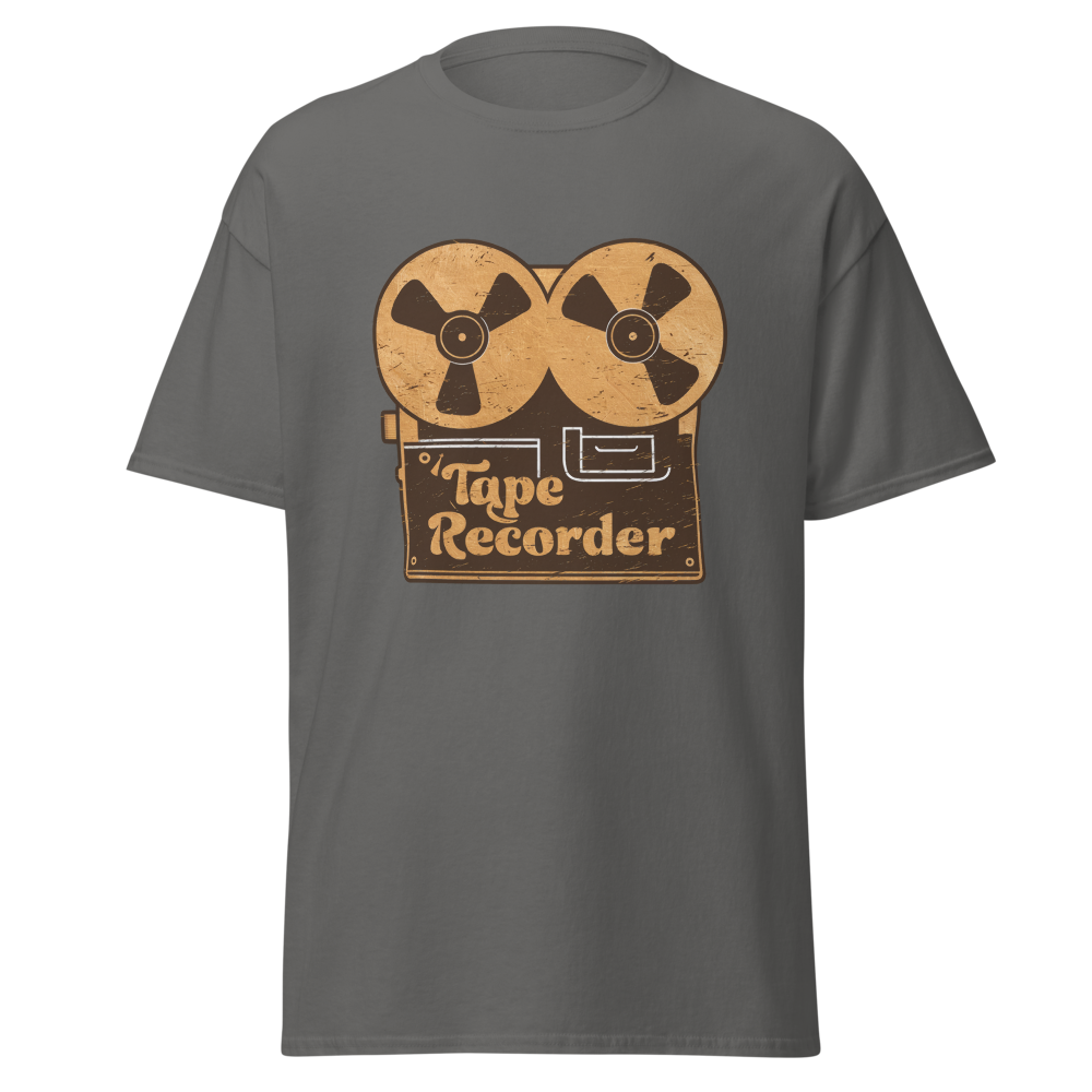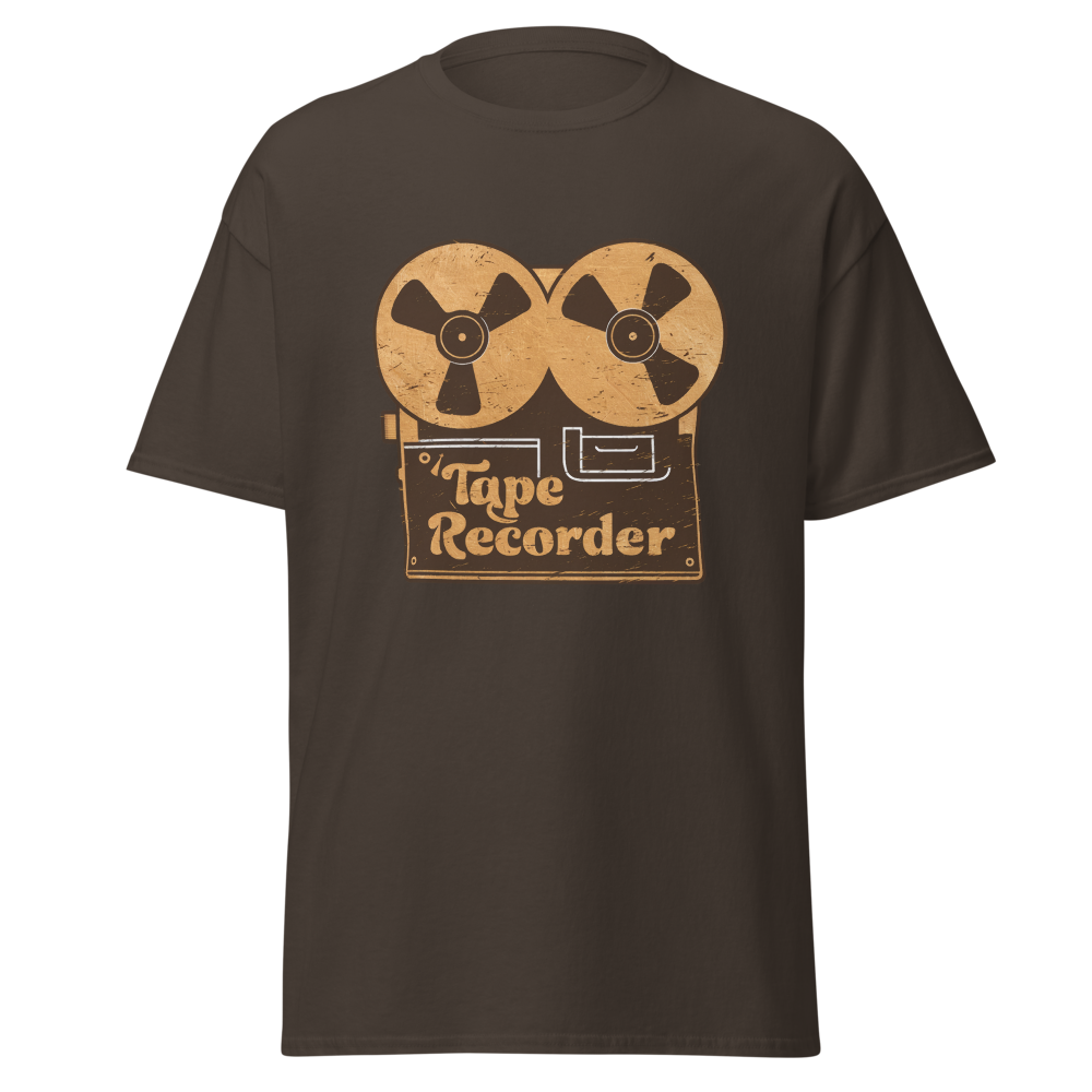 Featuring a bold graphic of a vintage reel-to-reel tape recorder with a stylish distressed finish, this shirt is perfect for those who appreciate old school technology and retro vibes. Ideal for young adults who love to mix nostalgia with modern fashion.This t-shirt is everything you’ve dreamed of and more. It feels soft and lightweight, with the right amount of stretch. It’s comfortable and flattering for all. 100% combed and ring-spun cotton (Heather colors contain polyester) Fabric weight: 4.2 oz./yd.² (142 g/m²) Pre-shrunk fabric Side-seamed construction Shoulder-to-shoulder taping