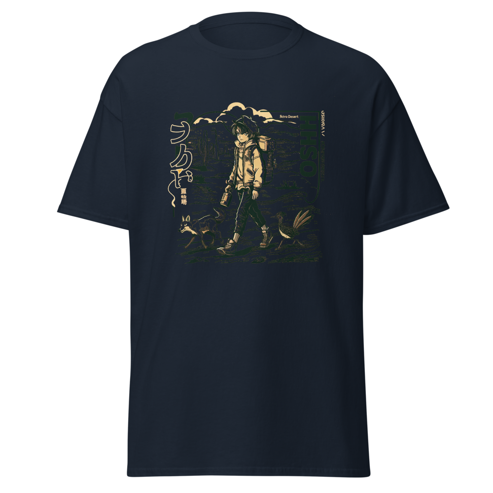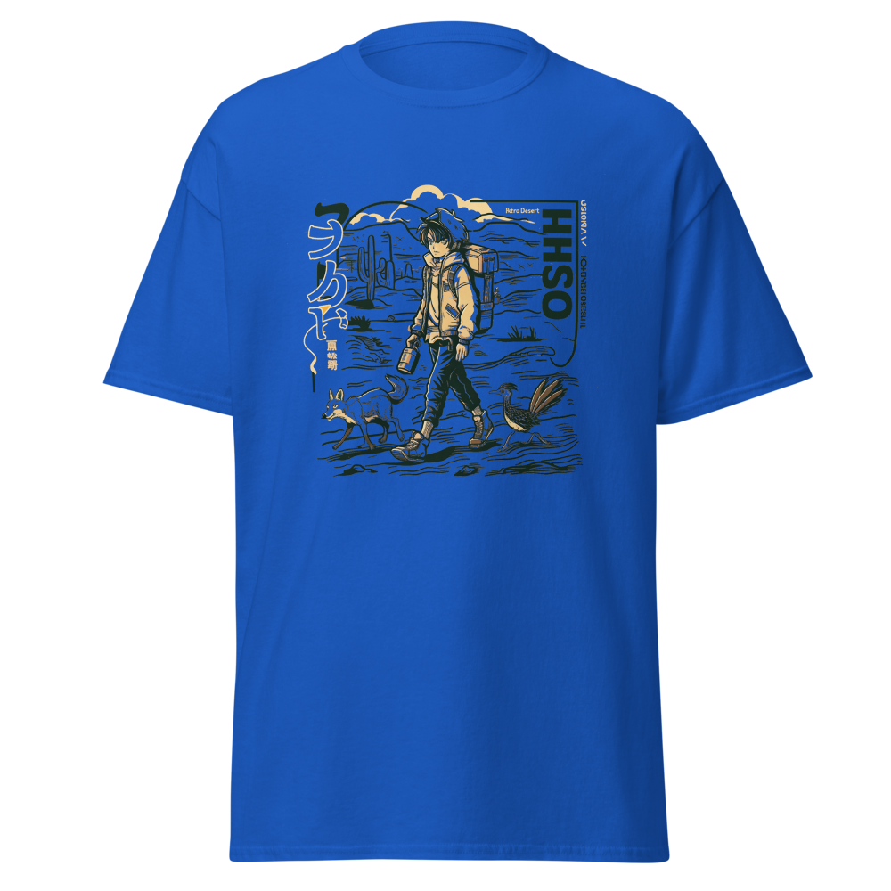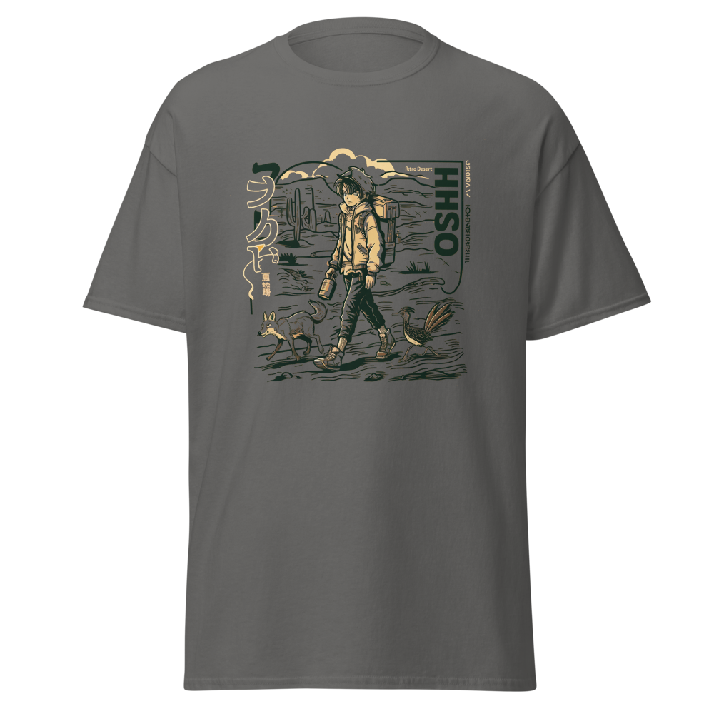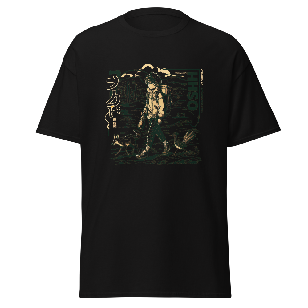 Dive back into the ’90s with this retro-inspired design featuring a cool anime character traversing a vast desert landscape. Perfect for anime and manga fans, this shirt blends classic vibes with a modern twist, making it a must-have for your collection.This t-shirt is everything you’ve dreamed of and more. It feels soft and lightweight, with the right amount of stretch. It’s comfortable and flattering for all. 100% combed and ring-spun cotton (Heather colors contain polyester) Fabric weight: 4.2 oz./yd.² (142 g/m²) Pre-shrunk fabric Side-seamed construction Shoulder-to-shoulder taping