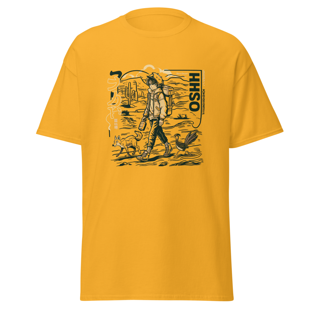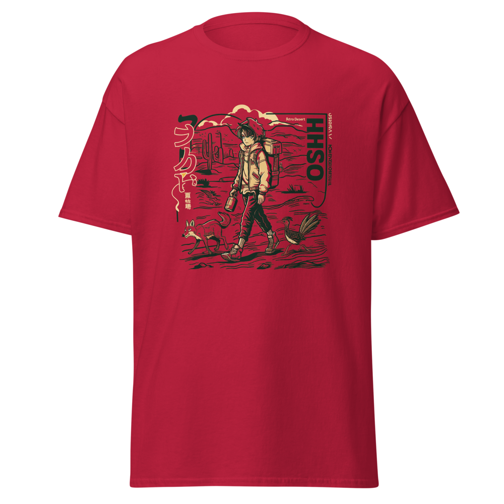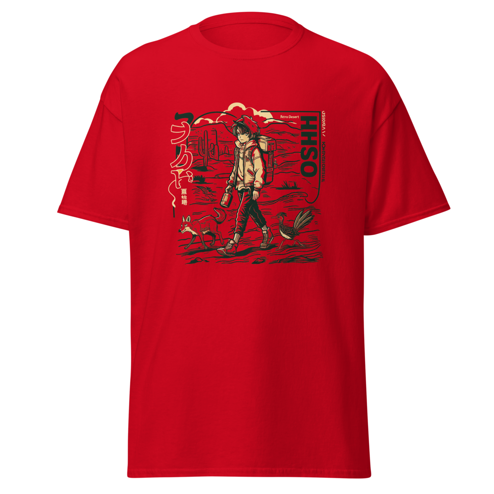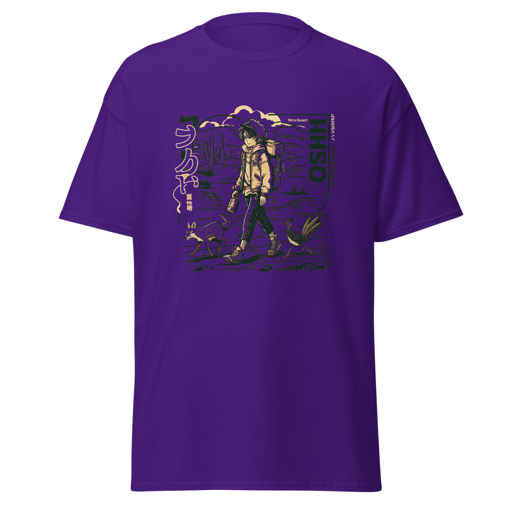 Dive back into the ’90s with this retro-inspired design featuring a cool anime character traversing a vast desert landscape. Perfect for anime and manga fans, this shirt blends classic vibes with a modern twist, making it a must-have for your collection.This t-shirt is everything you’ve dreamed of and more. It feels soft and lightweight, with the right amount of stretch. It’s comfortable and flattering for all. 100% combed and ring-spun cotton (Heather colors contain polyester) Fabric weight: 4.2 oz./yd.² (142 g/m²) Pre-shrunk fabric Side-seamed construction Shoulder-to-shoulder taping