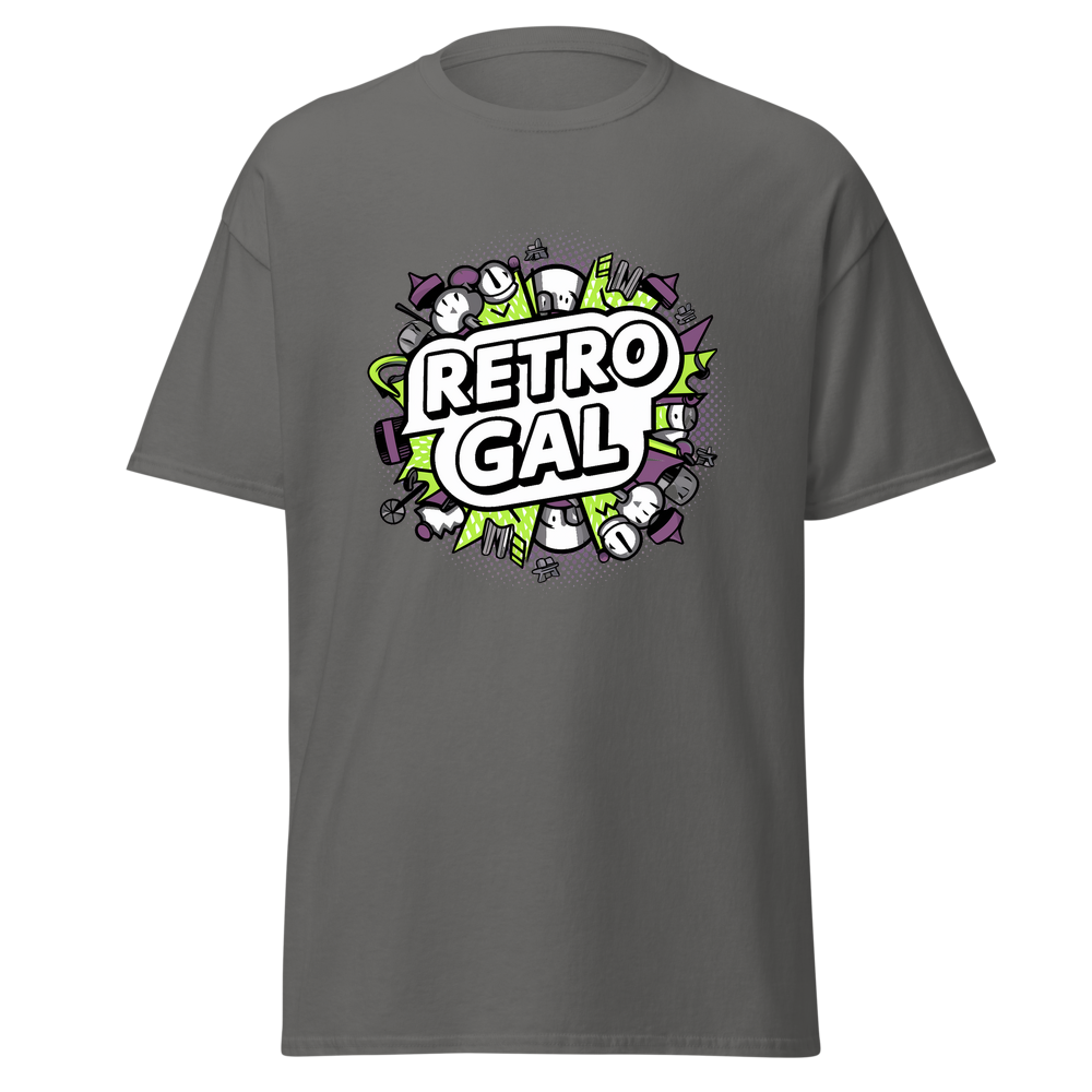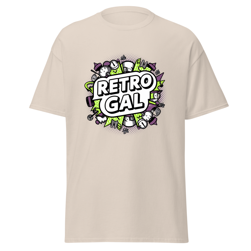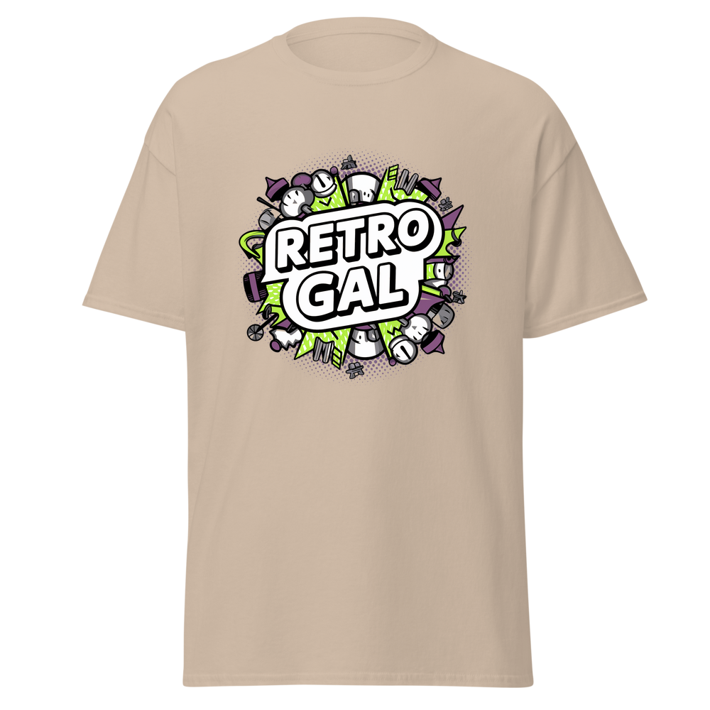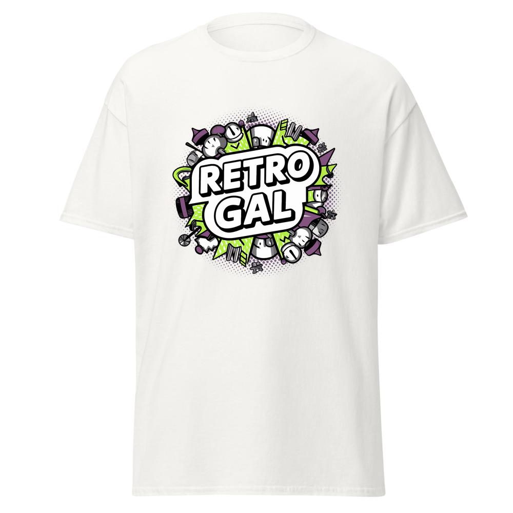 Step back in time with this fun and colorful t-shirt featuring vintage gaming characters and items, all arranged in a funky, pop-art style. Perfect for retro gaming fans and gals who love a bit of nostalgia in their wardrobe!This t-shirt is everything you’ve dreamed of and more. It feels soft and lightweight, with the right amount of stretch. It’s comfortable and flattering for all. 100% combed and ring-spun cotton (Heather colors contain polyester) Fabric weight: 4.2 oz./yd.² (142 g/m²) Pre-shrunk fabric Side-seamed construction Shoulder-to-shoulder taping