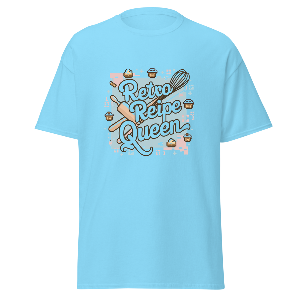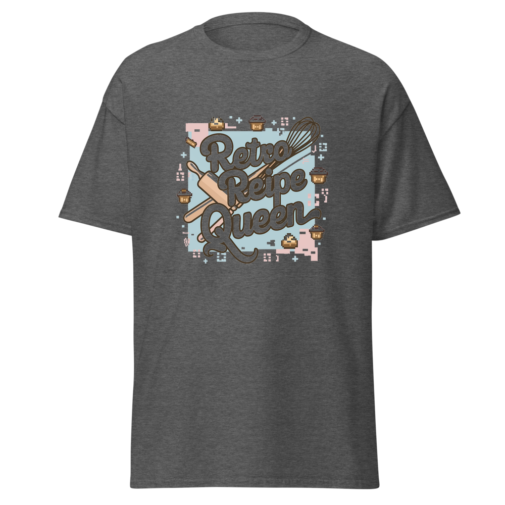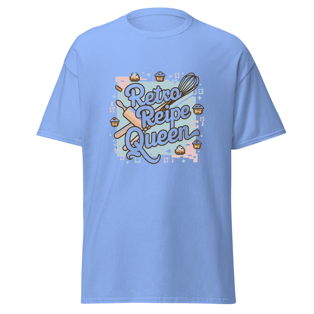 Embrace your inner baker with this retro-inspired tee! Featuring an old-school rolling pin and whisk crossed behind pixelated treats like cupcakes and cookies, it’s perfect for those who reign in the kitchen.This t-shirt is everything you’ve dreamed of and more. It feels soft and lightweight, with the right amount of stretch. It’s comfortable and flattering for all. 100% combed and ring-spun cotton (Heather colors contain polyester) Fabric weight: 4.2 oz./yd.² (142 g/m²) Pre-shrunk fabric Side-seamed construction Shoulder-to-shoulder taping