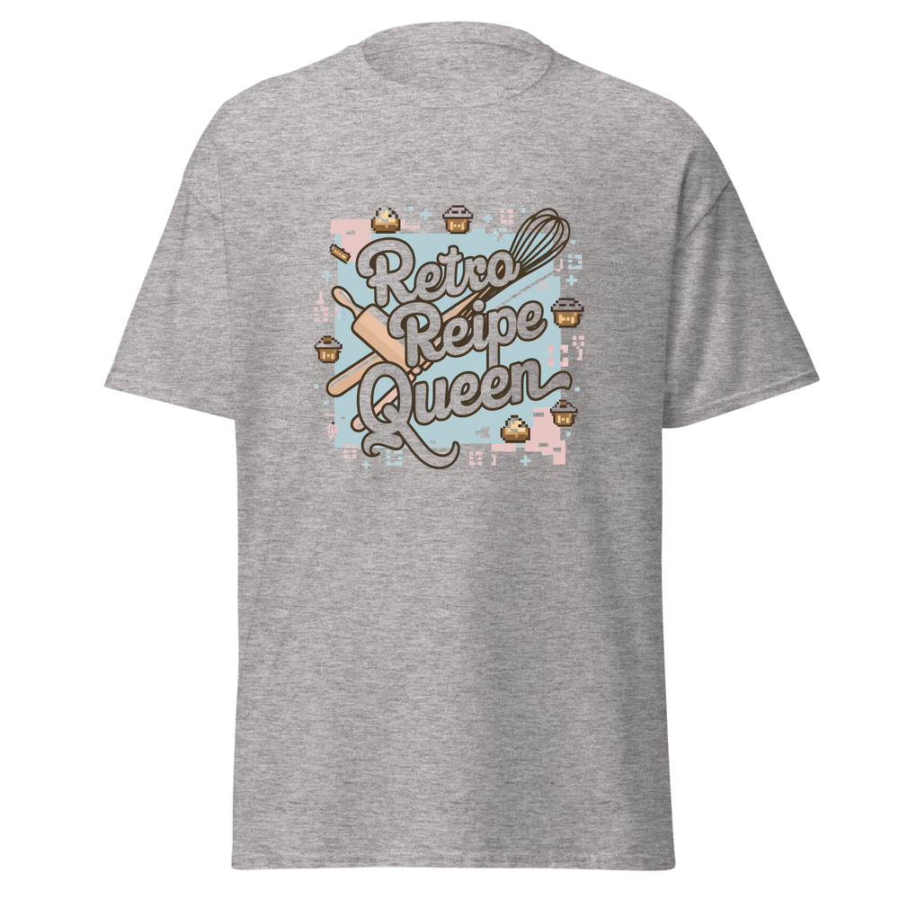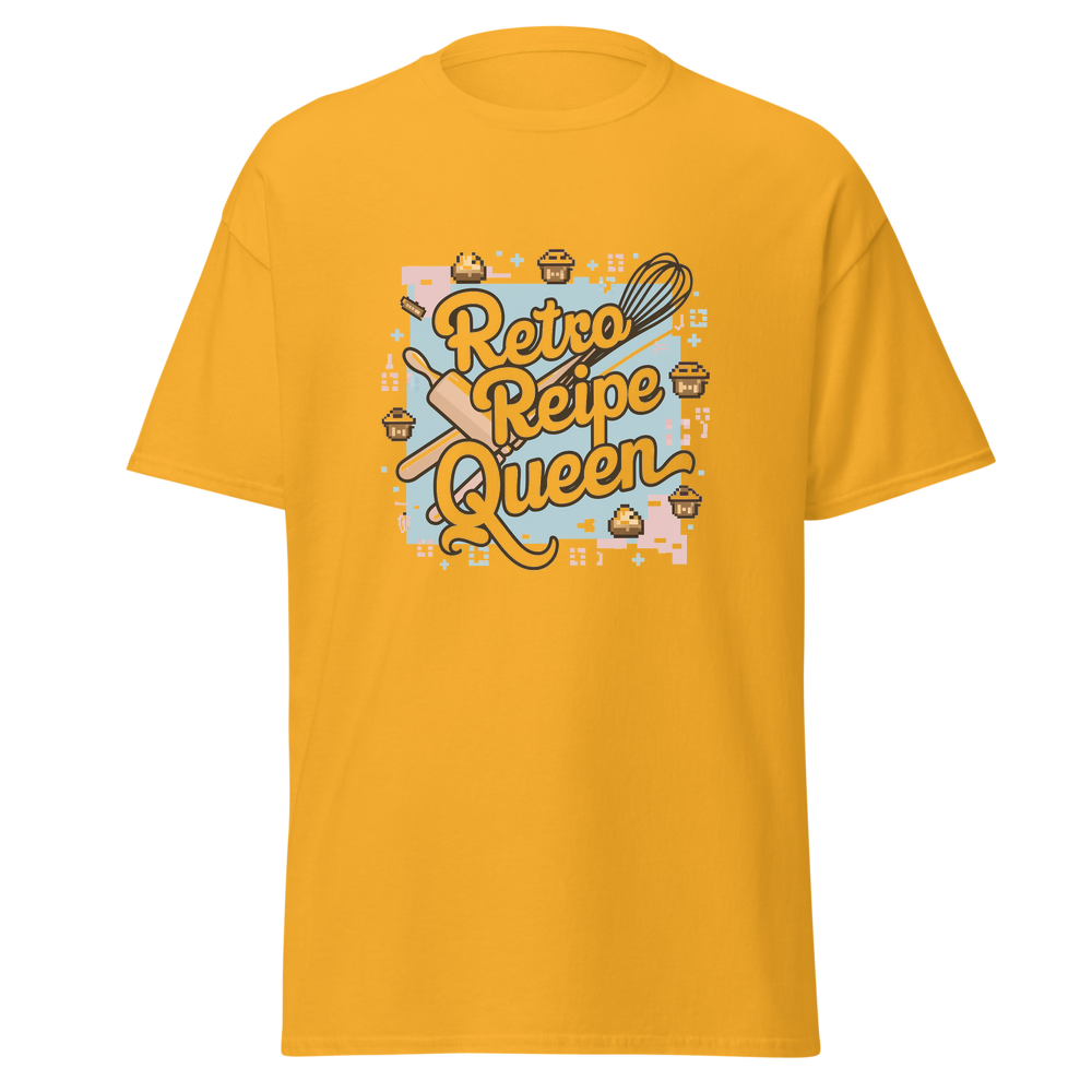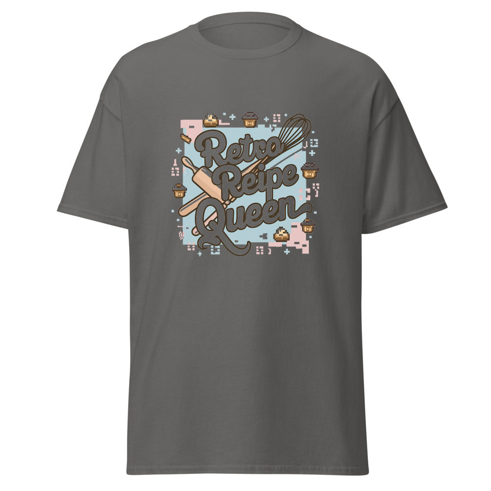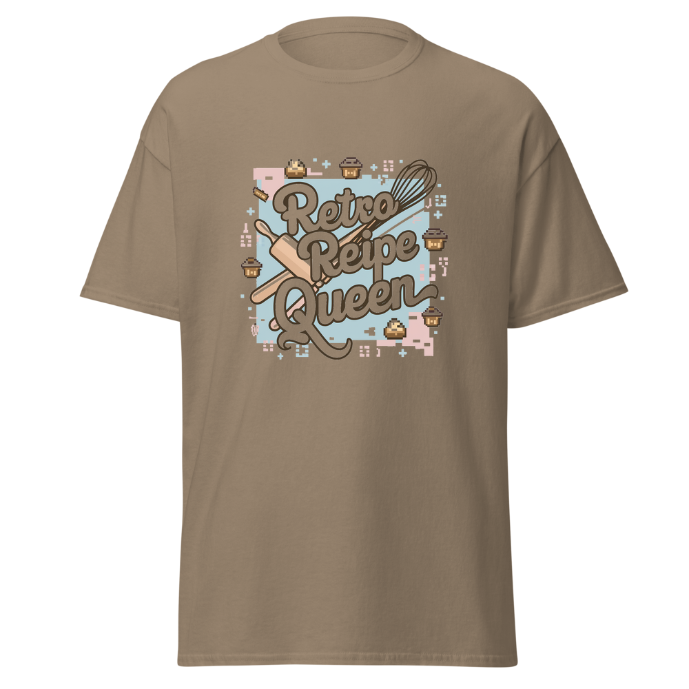 Embrace your inner baker with this retro-inspired tee! Featuring an old-school rolling pin and whisk crossed behind pixelated treats like cupcakes and cookies, it’s perfect for those who reign in the kitchen.This t-shirt is everything you’ve dreamed of and more. It feels soft and lightweight, with the right amount of stretch. It’s comfortable and flattering for all. 100% combed and ring-spun cotton (Heather colors contain polyester) Fabric weight: 4.2 oz./yd.² (142 g/m²) Pre-shrunk fabric Side-seamed construction Shoulder-to-shoulder taping
