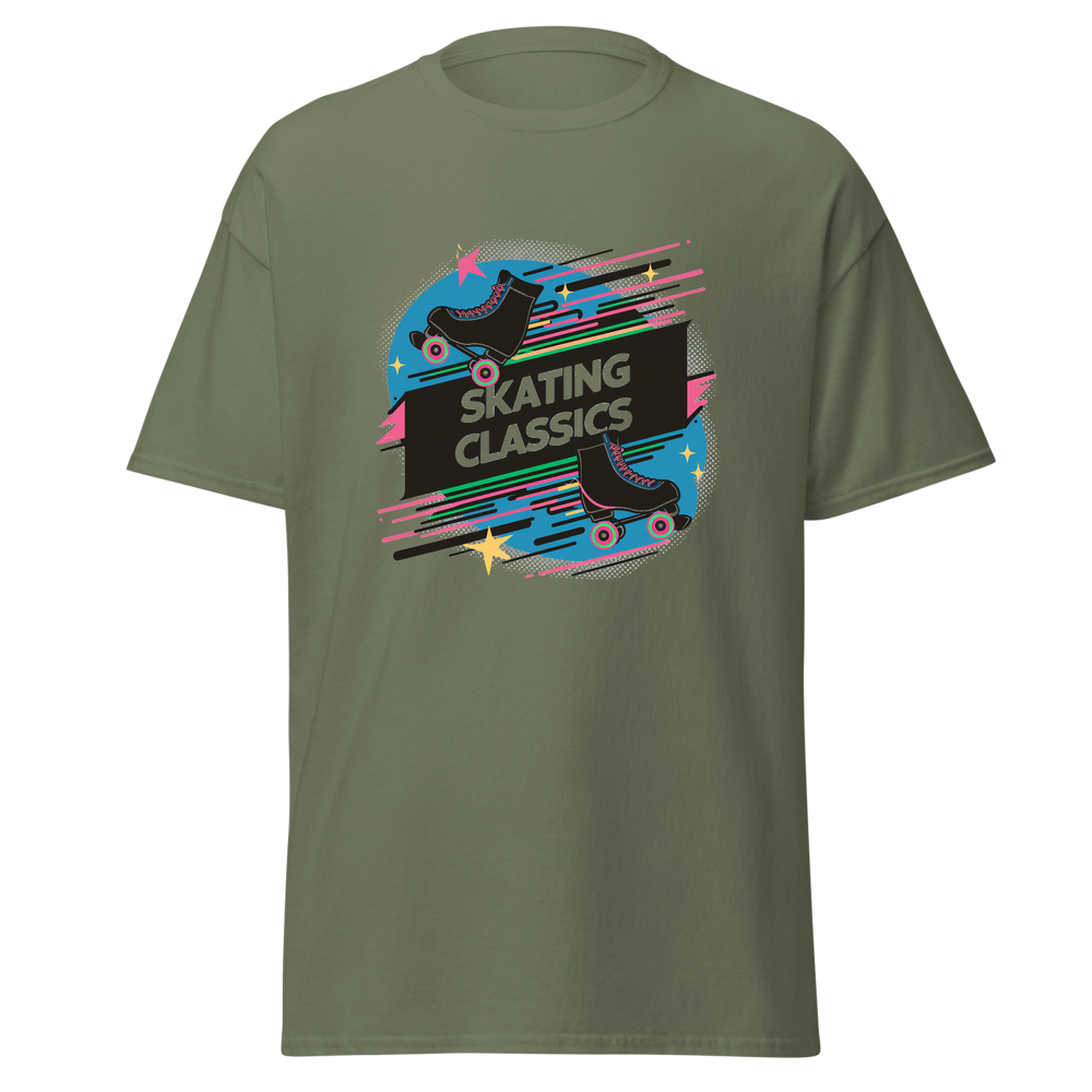 Embrace the nostalgia with this vibrant tee featuring roller skates with neon streaks, abstract stars, and glowing wheels. Perfect for young adults who love 80s and 90s pop culture.This t-shirt is everything you’ve dreamed of and more. It feels soft and lightweight, with the right amount of stretch. It’s comfortable and flattering for all. 100% combed and ring-spun cotton (Heather colors contain polyester) Fabric weight: 4.2 oz./yd.² (142 g/m²) Pre-shrunk fabric Side-seamed construction Shoulder-to-shoulder taping
