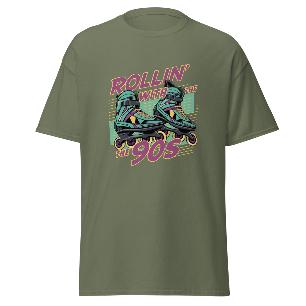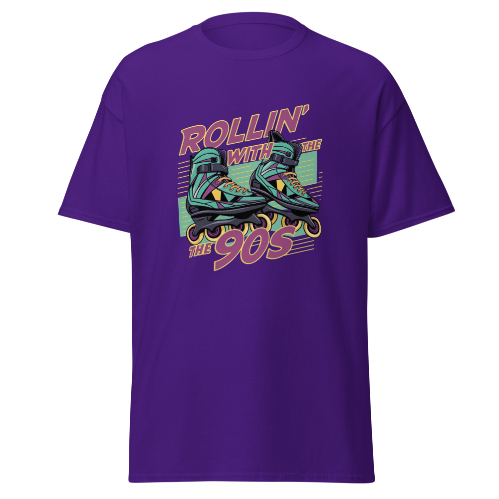 Embrace the nostalgia with this vibrant retro rollerblades graphic tee. Featuring abstract geometric patterns straight out of the 90s, this shirt is perfect for pop culture enthusiasts who love a splash of color and fun. Ideal for adults of all ages, roll into style effortlessly!This t-shirt is everything you’ve dreamed of and more. It feels soft and lightweight, with the right amount of stretch. It’s comfortable and flattering for all. 100% combed and ring-spun cotton (Heather colors contain polyester) Fabric weight: 4.2 oz./yd.² (142 g/m²) Pre-shrunk fabric Side-seamed construction Shoulder-to-shoulder taping