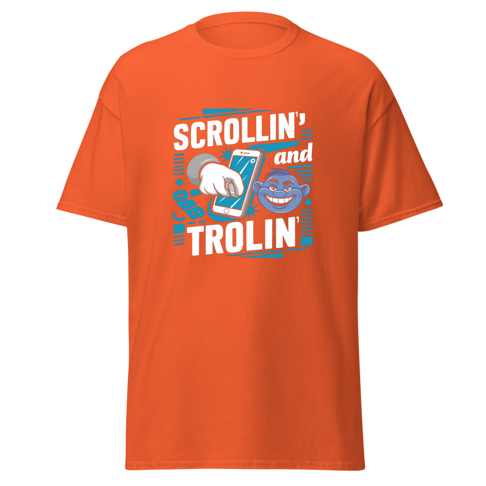 This fun t-shirt features a cartoon hand scrolling on a smartphone paired with a cheeky troll face emoji. Perfect for social media enthusiasts who love to browse and joke around, it’s a playful nod to our digital habits. Ideal for teens and anyone who can’t resist a good scroll and chuckle!This t-shirt is everything you’ve dreamed of and more. It feels soft and lightweight, with the right amount of stretch. It’s comfortable and flattering for all. 100% combed and ring-spun cotton (Heather colors contain polyester) Fabric weight: 4.2 oz./yd.² (142 g/m²) Pre-shrunk fabric Side-seamed construction Shoulder-to-shoulder taping