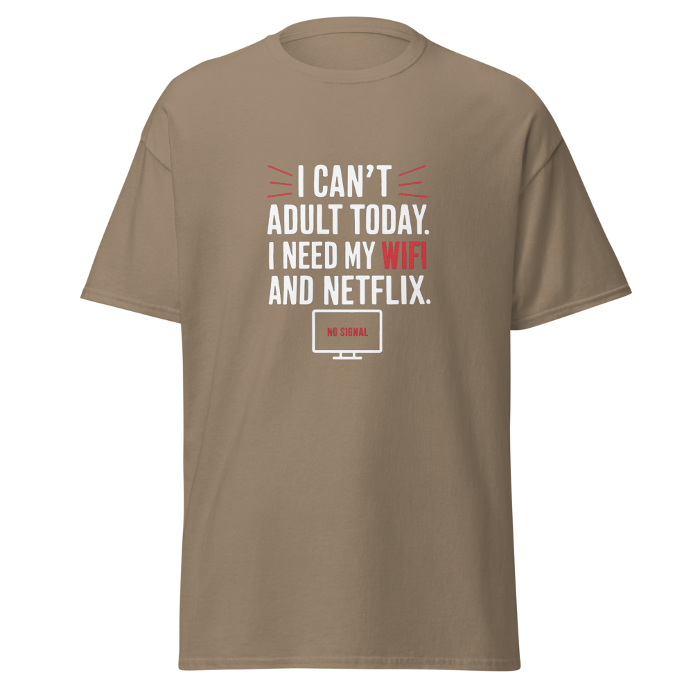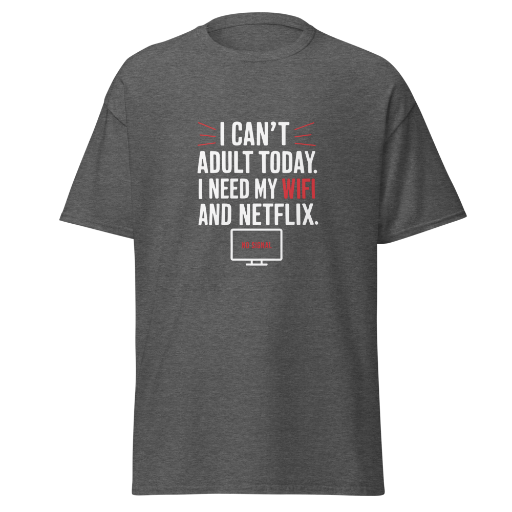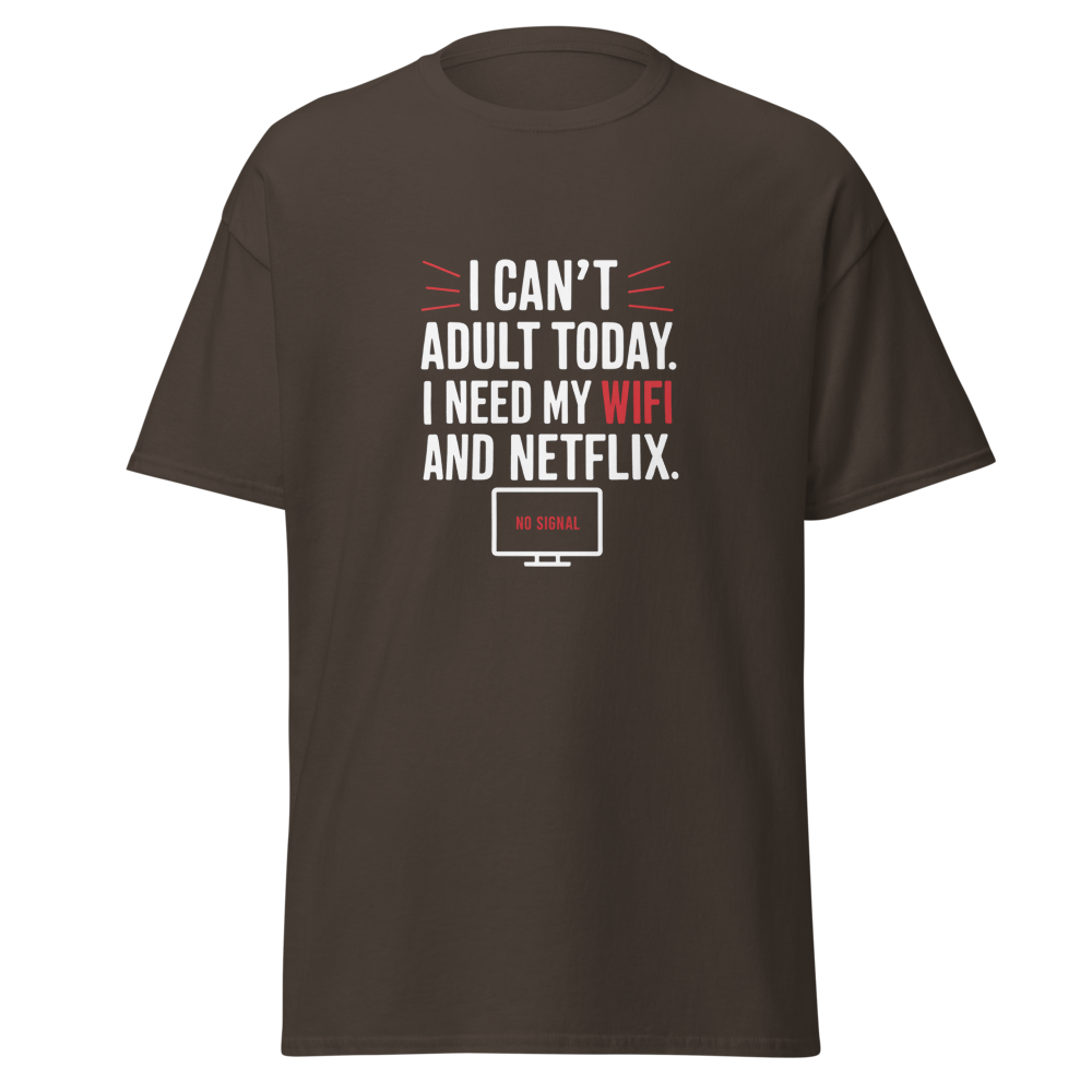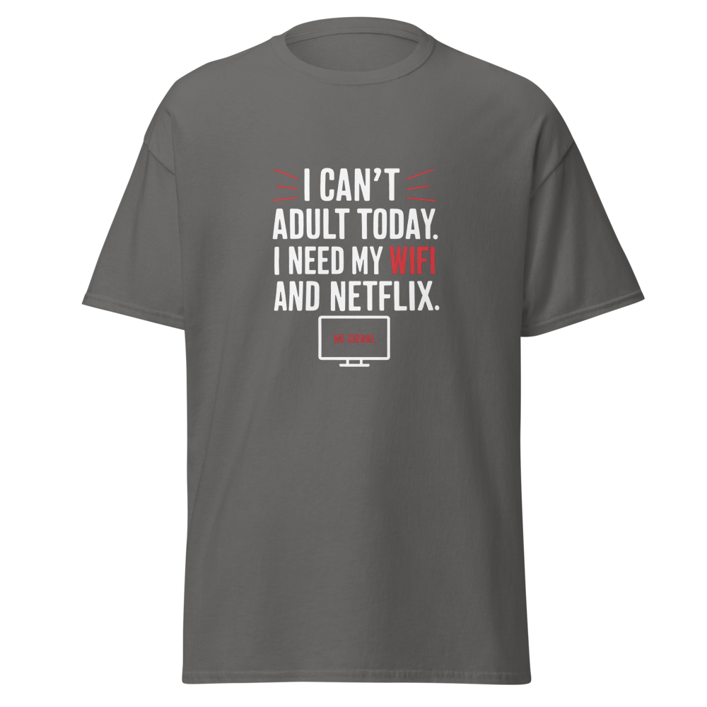 Featuring a “No Signal” computer screen, this tee humorously captures the essence of wanting to escape adult responsibilities. Perfect for young adults and comedy fans who need a giggle and a break from the daily grind.This t-shirt is everything you’ve dreamed of and more. It feels soft and lightweight, with the right amount of stretch. It’s comfortable and flattering for all. 100% combed and ring-spun cotton (Heather colors contain polyester) Fabric weight: 4.2 oz./yd.² (142 g/m²) Pre-shrunk fabric Side-seamed construction Shoulder-to-shoulder taping