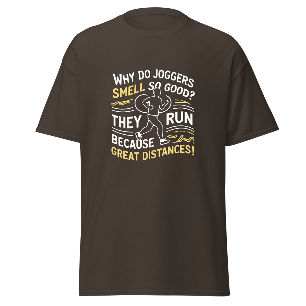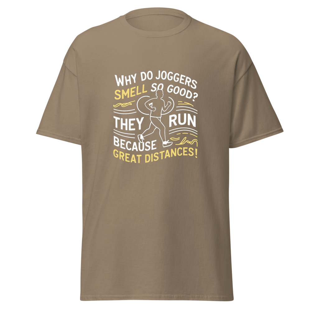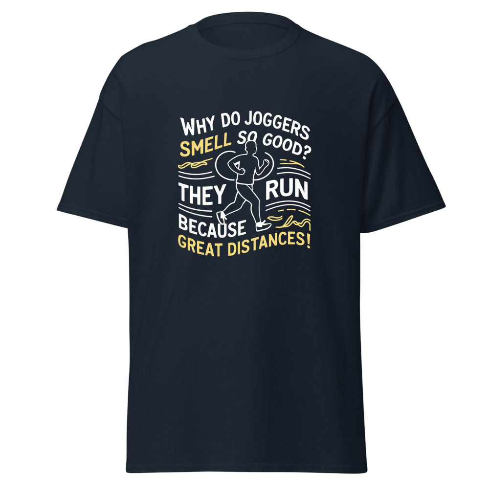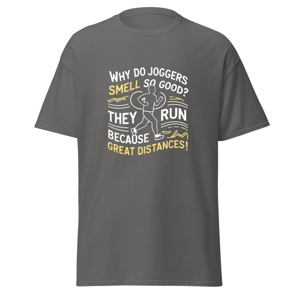 This playful t-shirt features a jogger leaving behind a trail of scent, perfect for the dad who loves a good run. Ideal for fitness enthusiasts and fans of lighthearted humor.This t-shirt is everything you’ve dreamed of and more. It feels soft and lightweight, with the right amount of stretch. It’s comfortable and flattering for all. 100% combed and ring-spun cotton (Heather colors contain polyester) Fabric weight: 4.2 oz./yd.² (142 g/m²) Pre-shrunk fabric Side-seamed construction Shoulder-to-shoulder taping