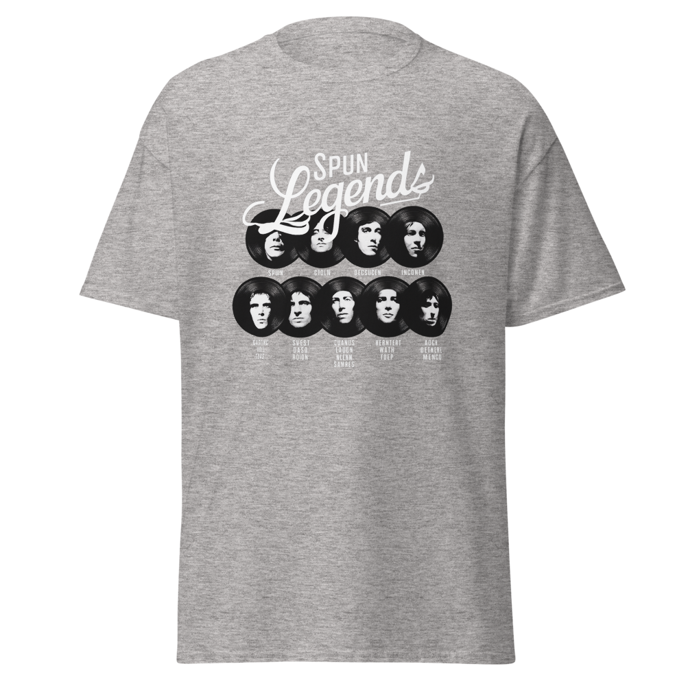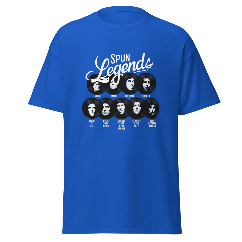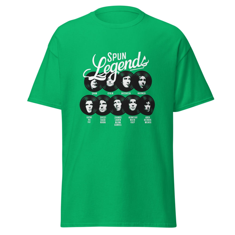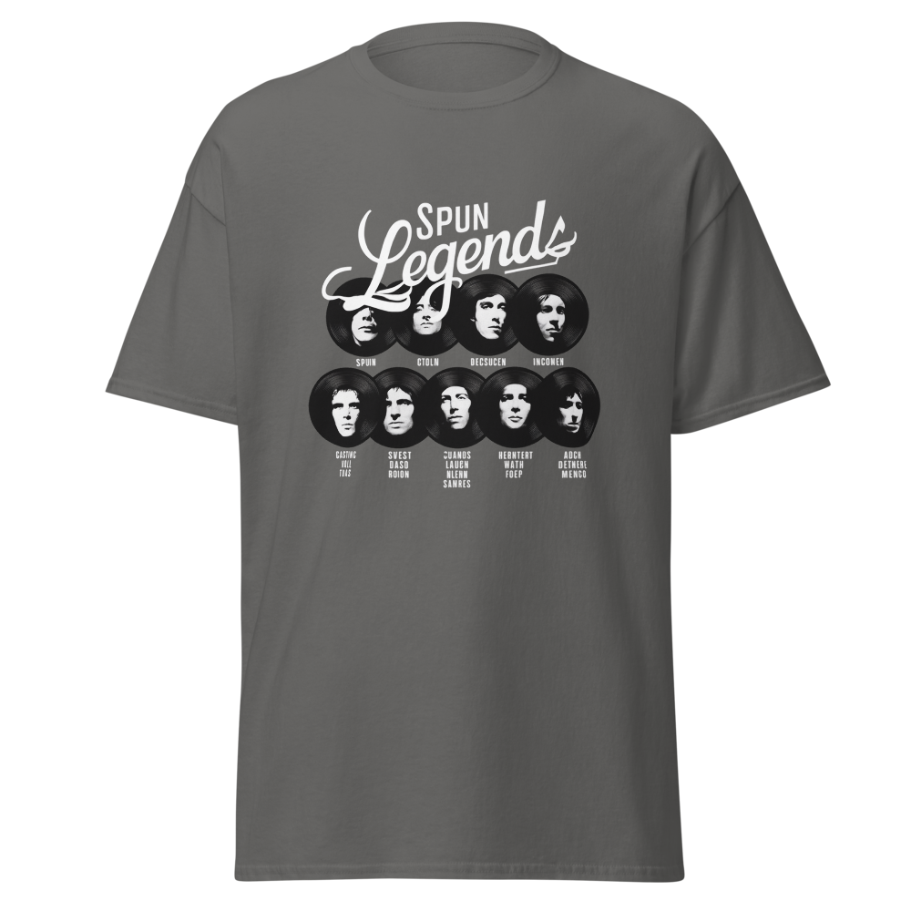 Dive into nostalgia with our “Spun Legends” shirt. Featuring stylized portraits of legendary rock stars overlaid on vinyl records, this shirt is perfect for music lovers. The artistic touch and bold design make it a standout piece for any collection. Ideal for adults who have a passion for vinyl records and classic rock.This t-shirt is everything you’ve dreamed of and more. It feels soft and lightweight, with the right amount of stretch. It’s comfortable and flattering for all. 100% combed and ring-spun cotton (Heather colors contain polyester) Fabric weight: 4.2 oz./yd.² (142 g/m²) Pre-shrunk fabric Side-seamed construction Shoulder-to-shoulder taping