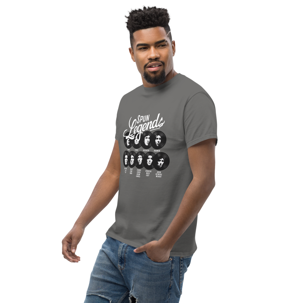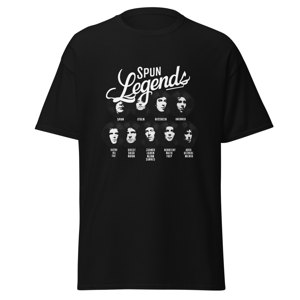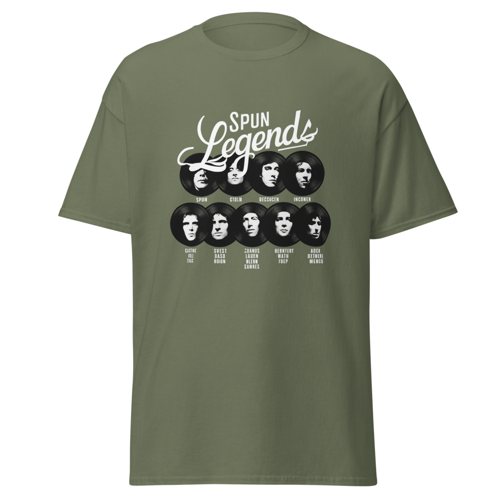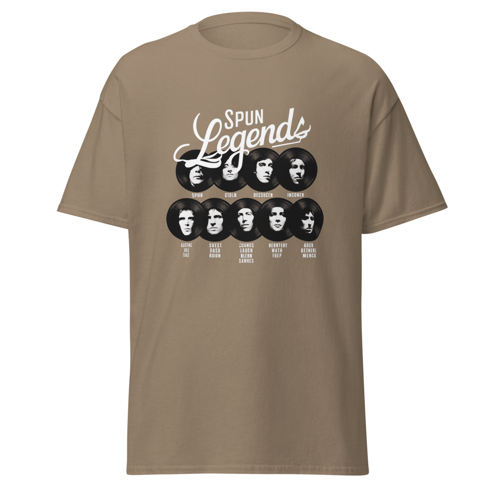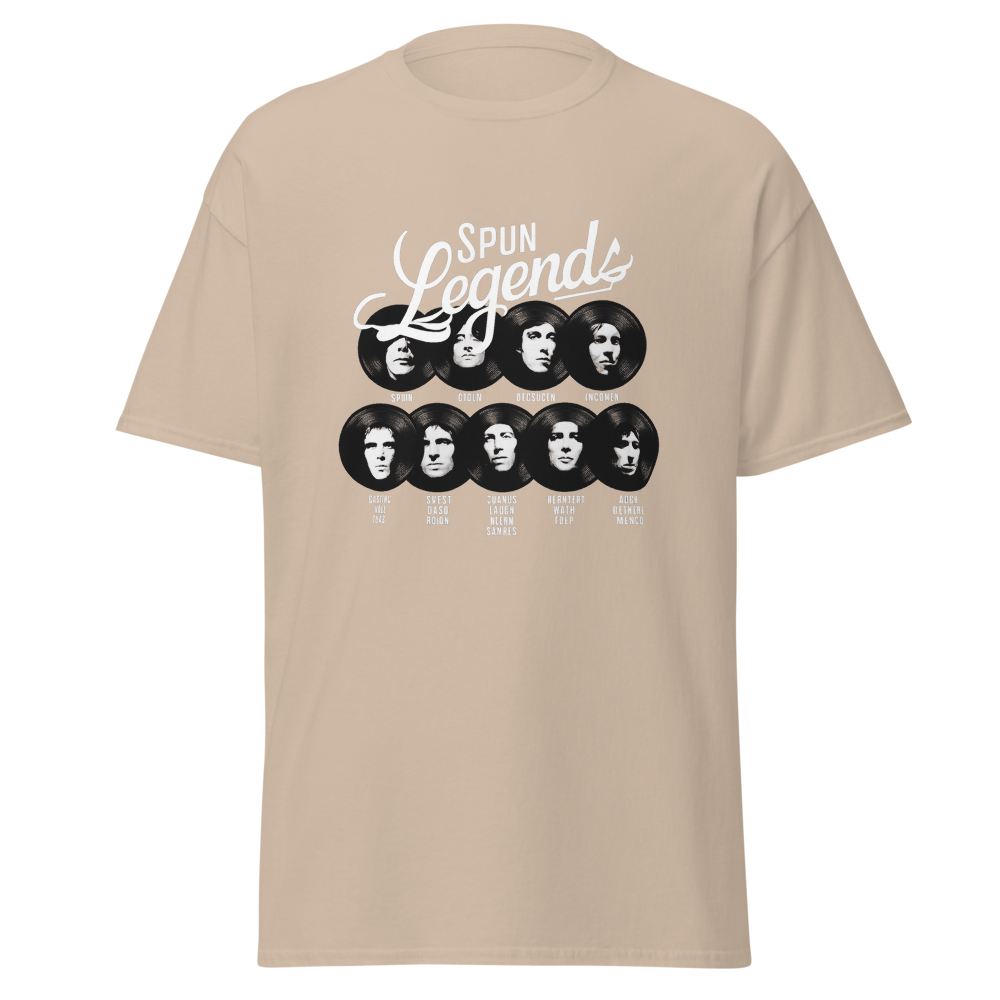 Dive into nostalgia with our “Spun Legends” shirt. Featuring stylized portraits of legendary rock stars overlaid on vinyl records, this shirt is perfect for music lovers. The artistic touch and bold design make it a standout piece for any collection. Ideal for adults who have a passion for vinyl records and classic rock.This t-shirt is everything you’ve dreamed of and more. It feels soft and lightweight, with the right amount of stretch. It’s comfortable and flattering for all. 100% combed and ring-spun cotton (Heather colors contain polyester) Fabric weight: 4.2 oz./yd.² (142 g/m²) Pre-shrunk fabric Side-seamed construction Shoulder-to-shoulder taping