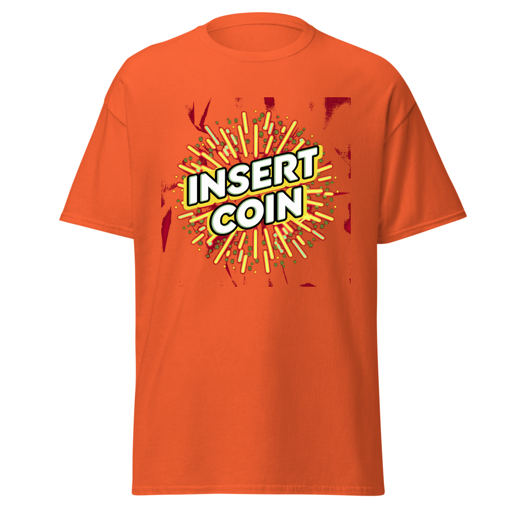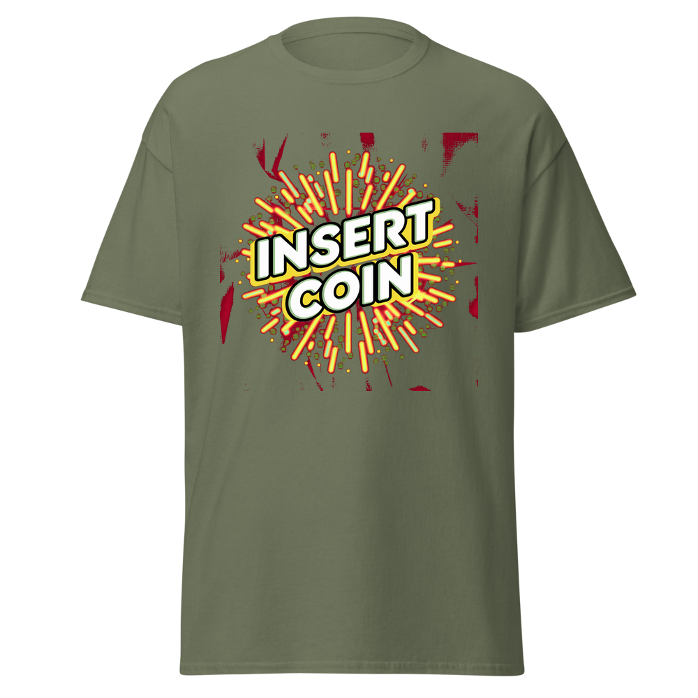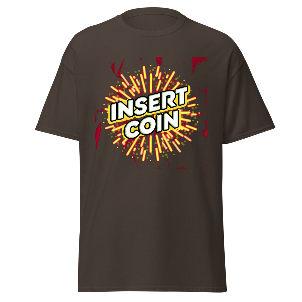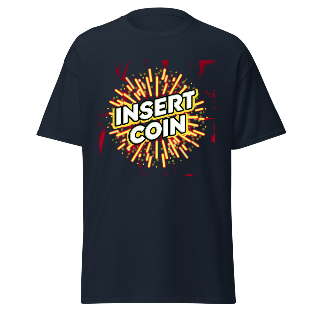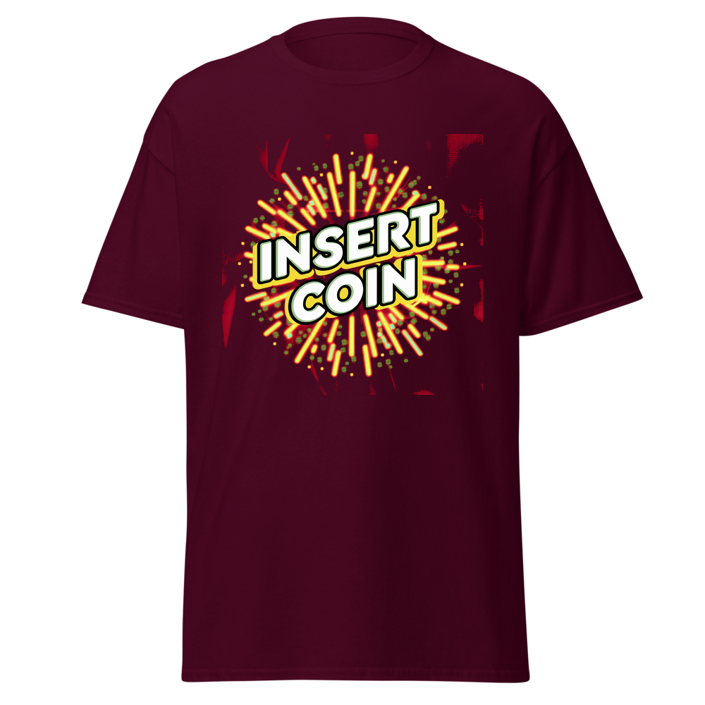 This t-shirt features a cool retro “Insert Coin” design, complete with arcade-style borders and fun abstract patterns. Perfect for kids and fans of classic gaming!This t-shirt is everything you’ve dreamed of and more. It feels soft and lightweight, with the right amount of stretch. It’s comfortable and flattering for all. 100% combed and ring-spun cotton (Heather colors contain polyester) Fabric weight: 4.2 oz./yd.² (142 g/m²) Pre-shrunk fabric Side-seamed construction Shoulder-to-shoulder taping