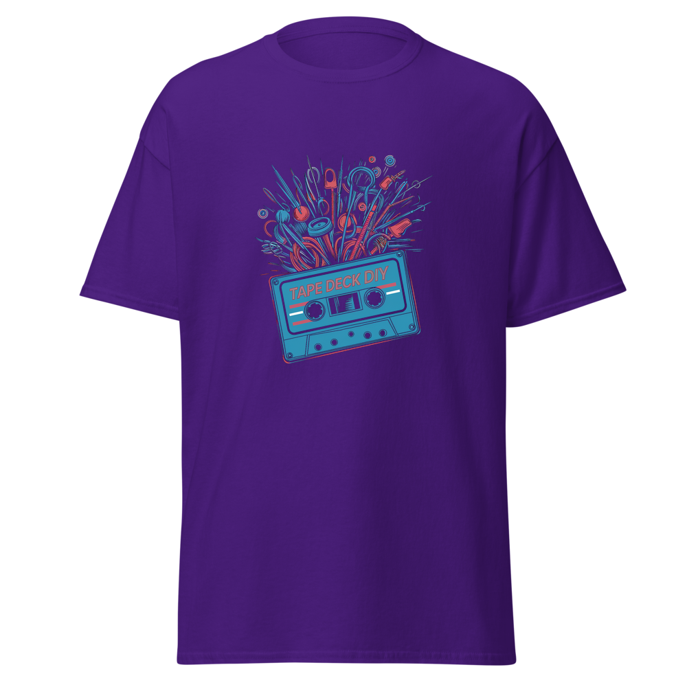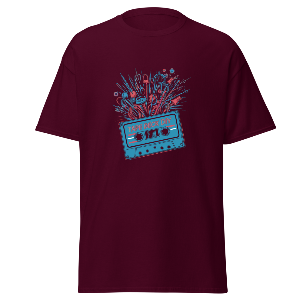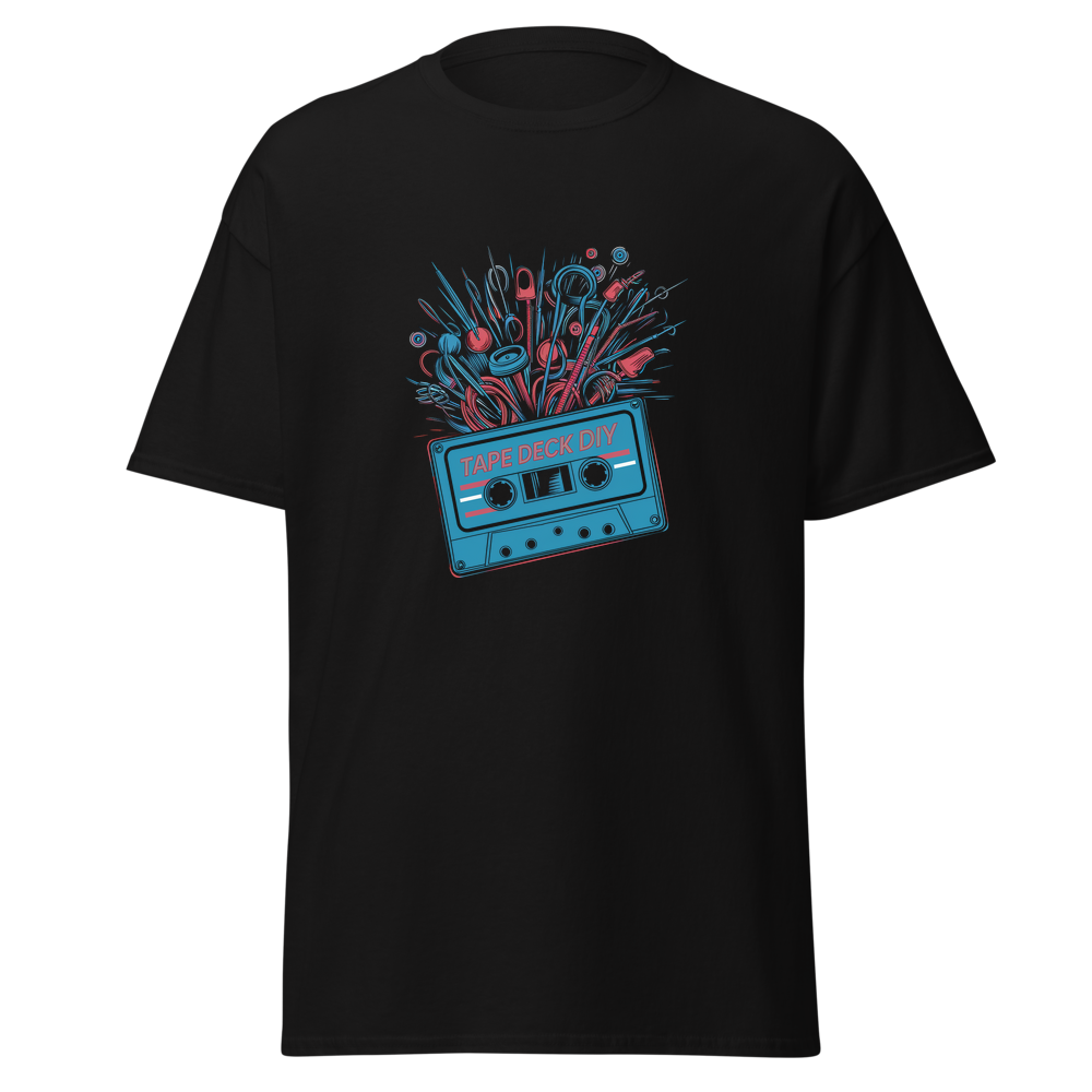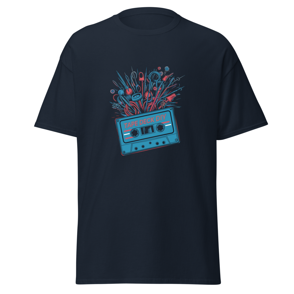 This creative t-shirt design features a retro cassette tape with fun crafting elements like buttons, needles, and threads spilling out. Perfect for the DIY enthusiasts who love a mix of nostalgia and creativity.This t-shirt is everything you’ve dreamed of and more. It feels soft and lightweight, with the right amount of stretch. It’s comfortable and flattering for all. 100% combed and ring-spun cotton (Heather colors contain polyester) Fabric weight: 4.2 oz./yd.² (142 g/m²) Pre-shrunk fabric Side-seamed construction Shoulder-to-shoulder taping