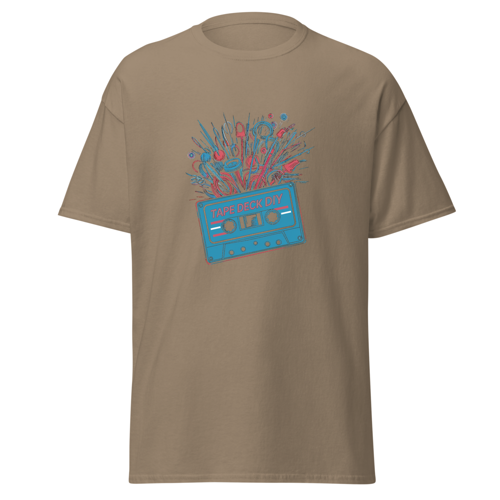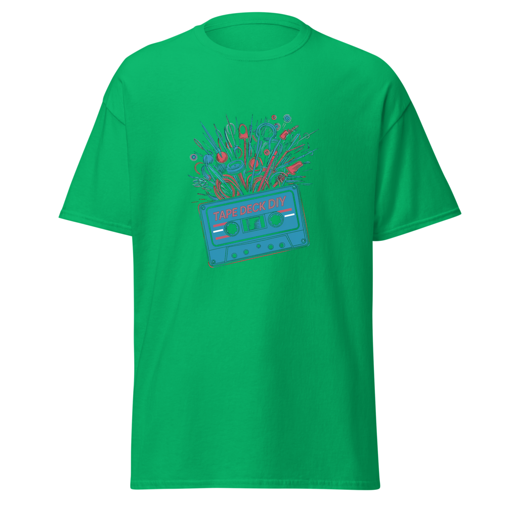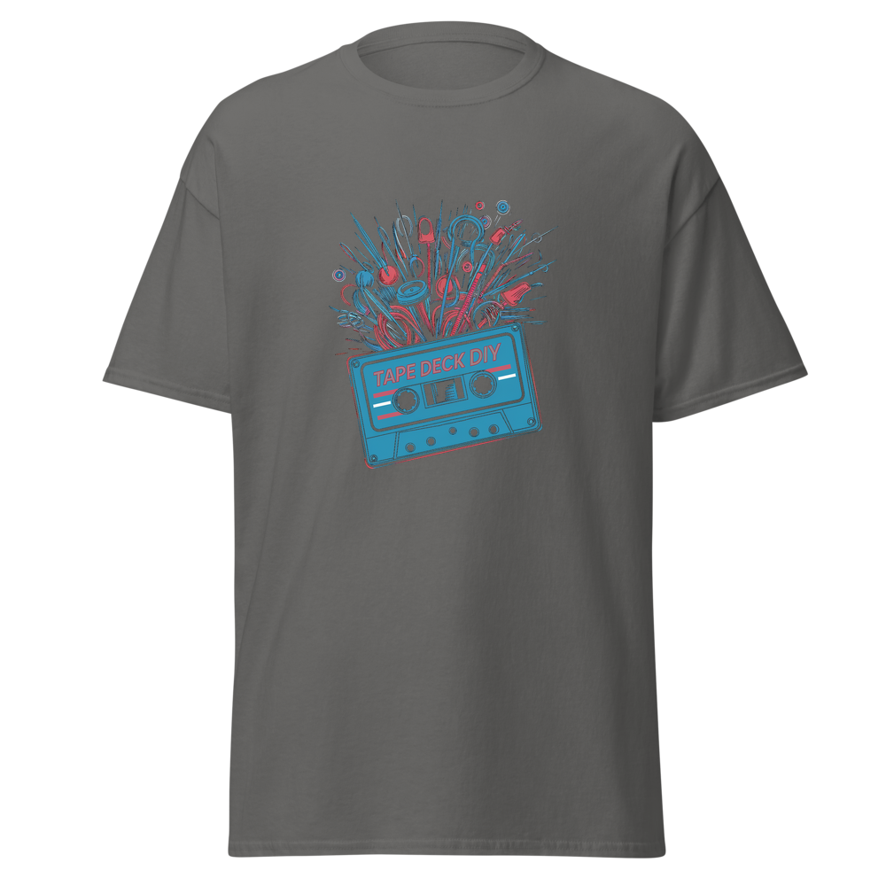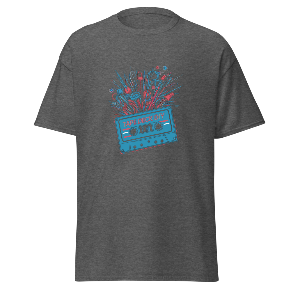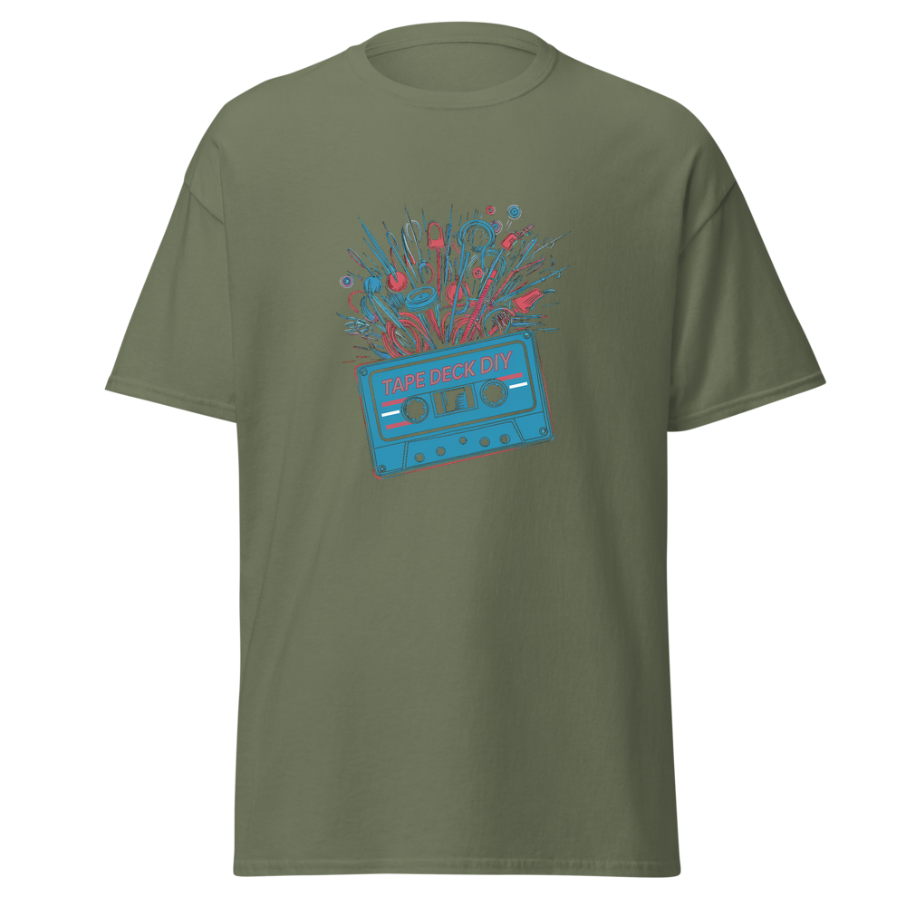 This creative t-shirt design features a retro cassette tape with fun crafting elements like buttons, needles, and threads spilling out. Perfect for the DIY enthusiasts who love a mix of nostalgia and creativity.This t-shirt is everything you’ve dreamed of and more. It feels soft and lightweight, with the right amount of stretch. It’s comfortable and flattering for all. 100% combed and ring-spun cotton (Heather colors contain polyester) Fabric weight: 4.2 oz./yd.² (142 g/m²) Pre-shrunk fabric Side-seamed construction Shoulder-to-shoulder taping