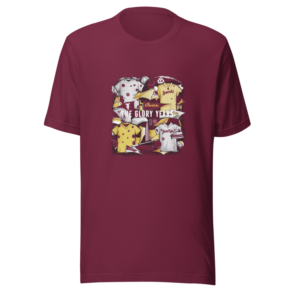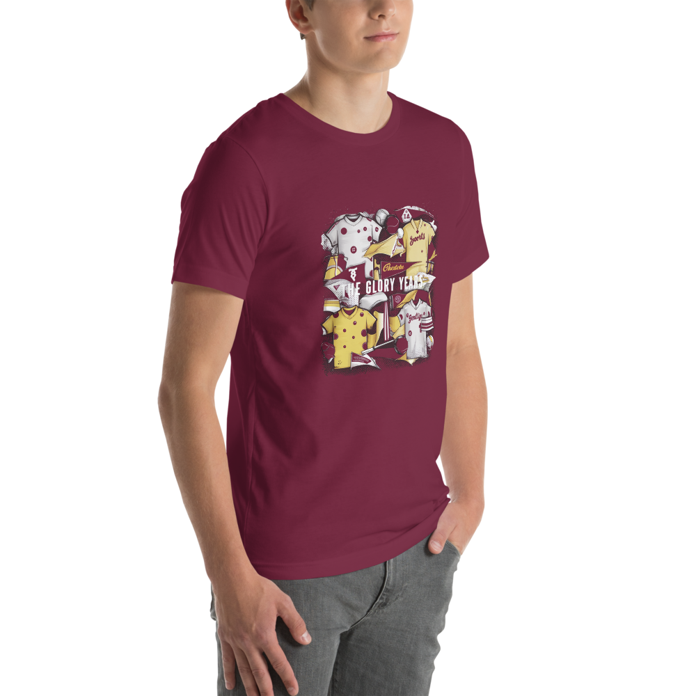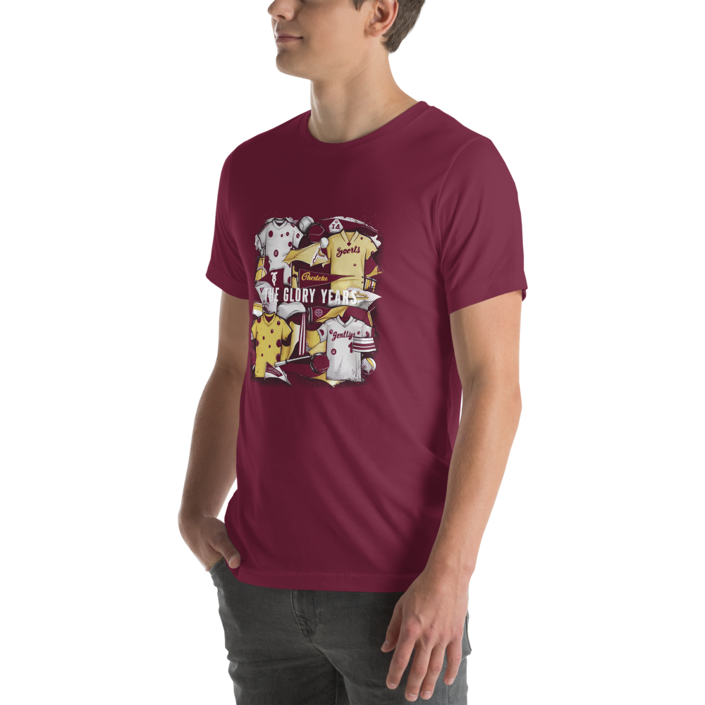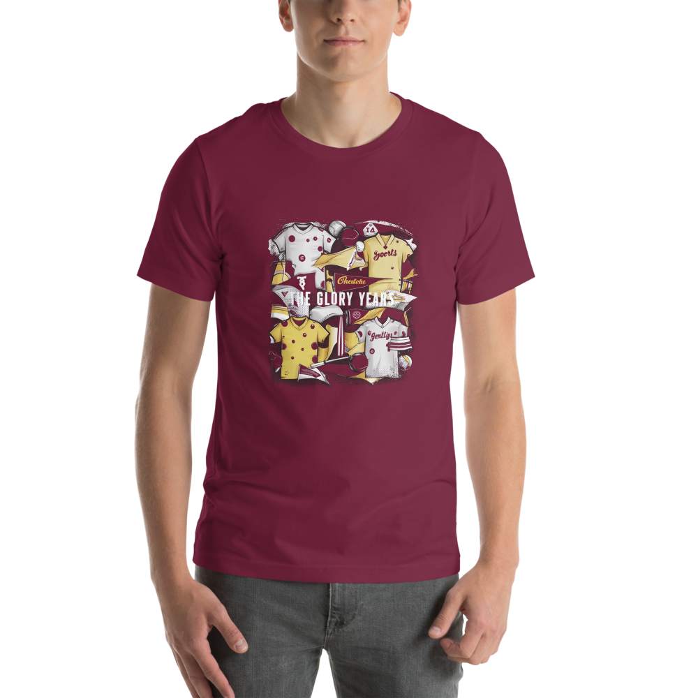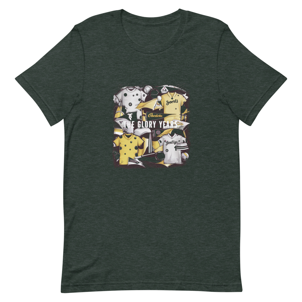Dive into nostalgia with this pop art collage featuring vintage sports memorabilia. From old jerseys to classic pennants and equipment, it’s a tribute to the glory years of sports. Perfect for those who cherish the golden era of the game.This t-shirt is everything you’ve dreamed of and more. It feels soft and lightweight, with the right amount of stretch. It’s comfortable and flattering for all. 100% combed and ring-spun cotton (Heather colors contain polyester) Fabric weight: 4.2 oz./yd.² (142 g/m²) Pre-shrunk fabric Side-seamed construction Shoulder-to-shoulder taping