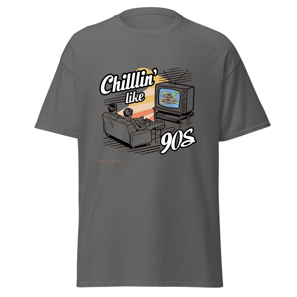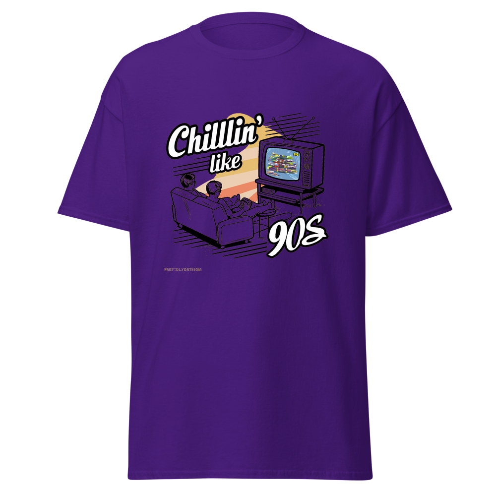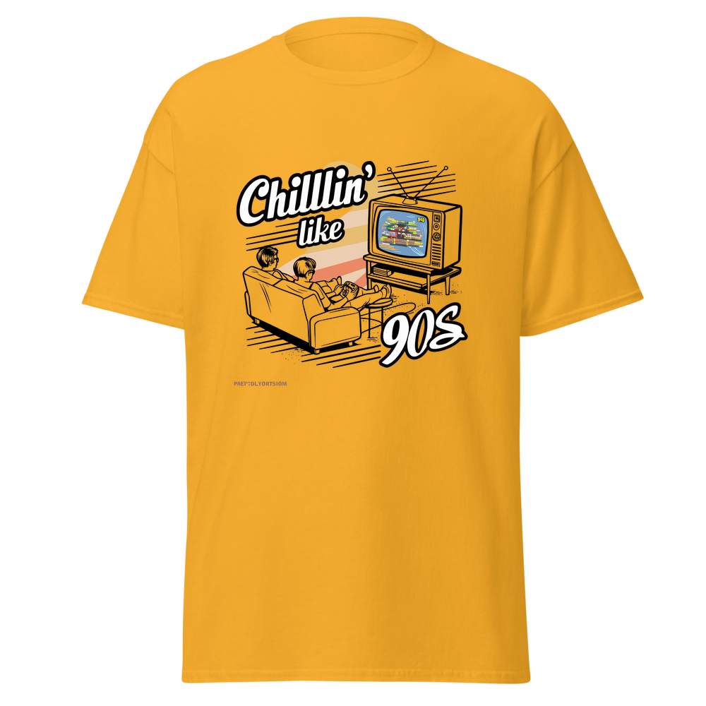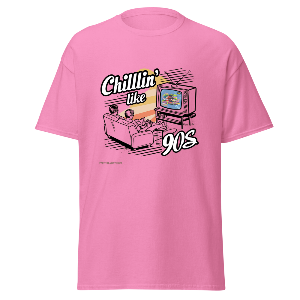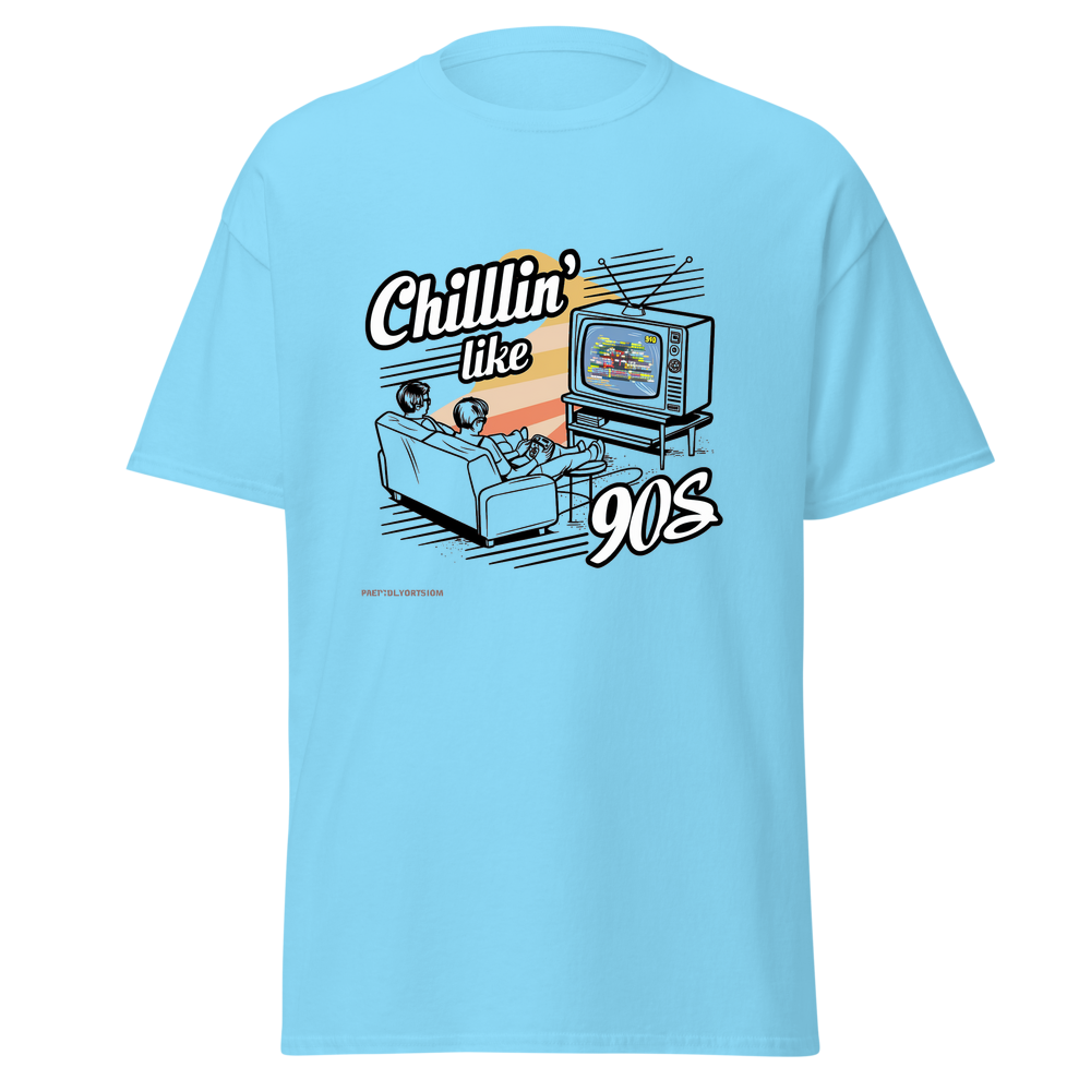 Get comfy and nostalgic with this retro design featuring a classic couch setup, complete with vintage gaming consoles and an old-school TV playing a beloved game. Perfect for anyone who loves the 90s vibe.This t-shirt is everything you’ve dreamed of and more. It feels soft and lightweight, with the right amount of stretch. It’s comfortable and flattering for all. 100% combed and ring-spun cotton (Heather colors contain polyester) Fabric weight: 4.2 oz./yd.² (142 g/m²) Pre-shrunk fabric Side-seamed construction Shoulder-to-shoulder taping