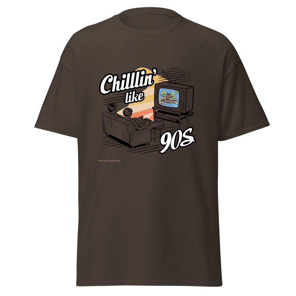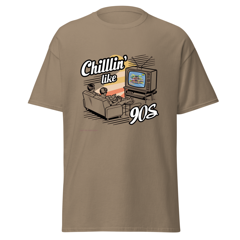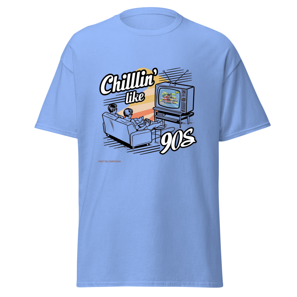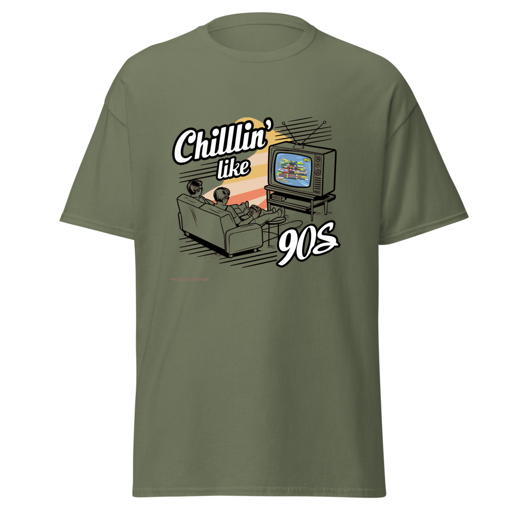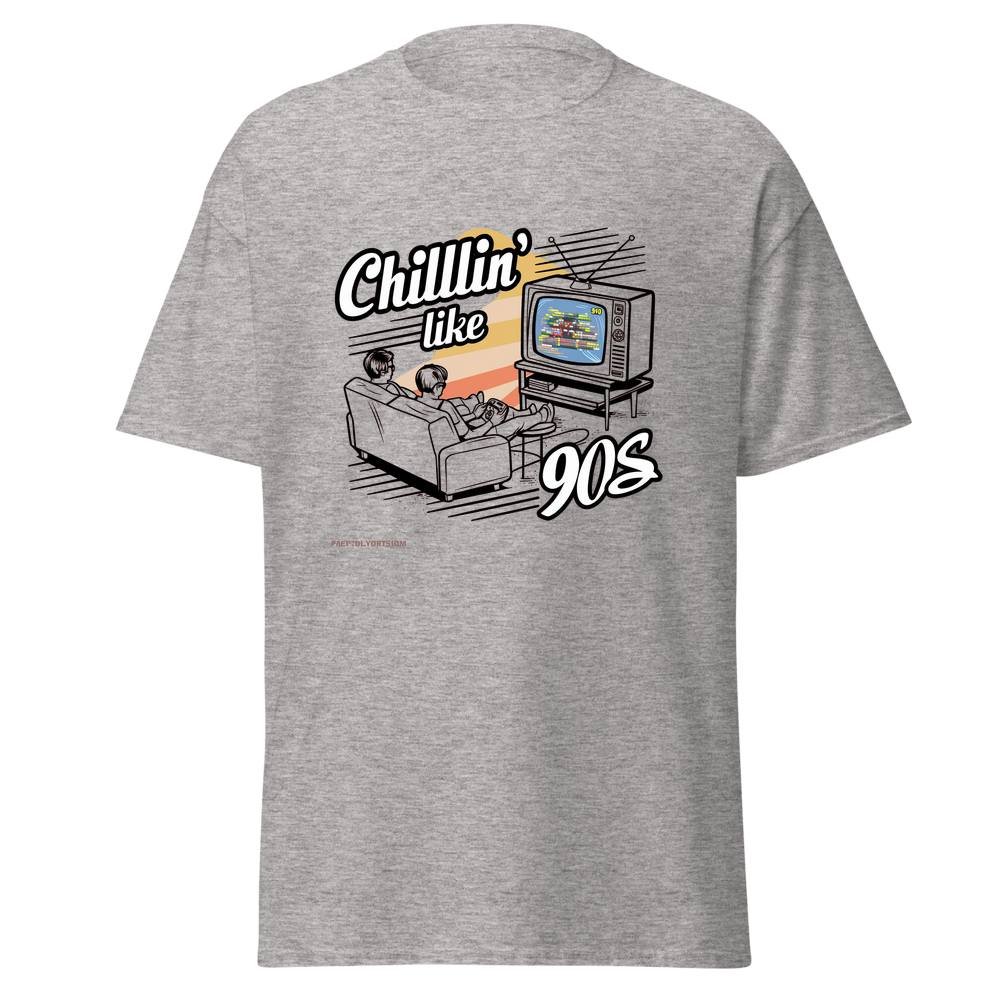 Get comfy and nostalgic with this retro design featuring a classic couch setup, complete with vintage gaming consoles and an old-school TV playing a beloved game. Perfect for anyone who loves the 90s vibe.This t-shirt is everything you’ve dreamed of and more. It feels soft and lightweight, with the right amount of stretch. It’s comfortable and flattering for all. 100% combed and ring-spun cotton (Heather colors contain polyester) Fabric weight: 4.2 oz./yd.² (142 g/m²) Pre-shrunk fabric Side-seamed construction Shoulder-to-shoulder taping