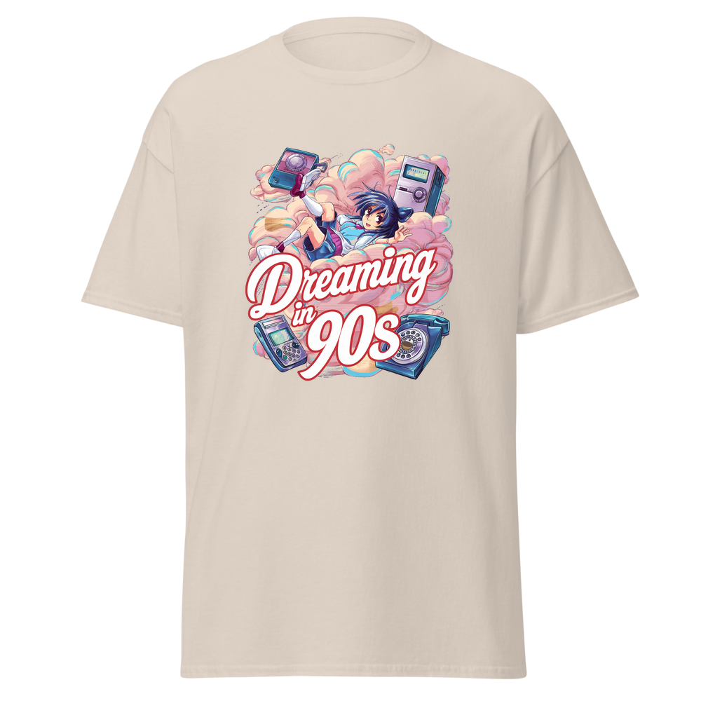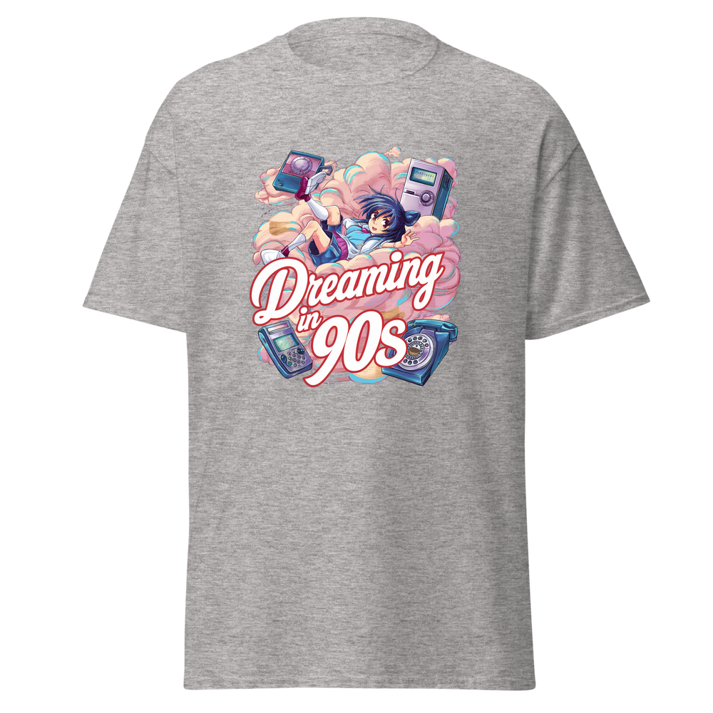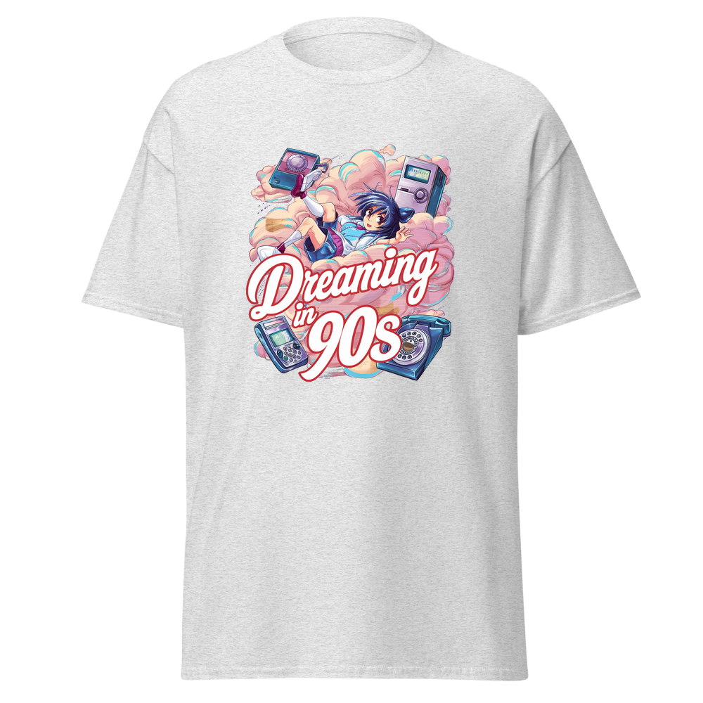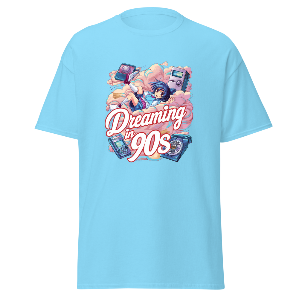 This tee features a dreamy anime character surrounded by fluffy clouds and retro 90s gadgets. Perfect for teens and anime lovers who adore a nostalgic twist!This t-shirt is everything you’ve dreamed of and more. It feels soft and lightweight, with the right amount of stretch. It’s comfortable and flattering for all. 100% combed and ring-spun cotton (Heather colors contain polyester) Fabric weight: 4.2 oz./yd.² (142 g/m²) Pre-shrunk fabric Side-seamed construction Shoulder-to-shoulder taping