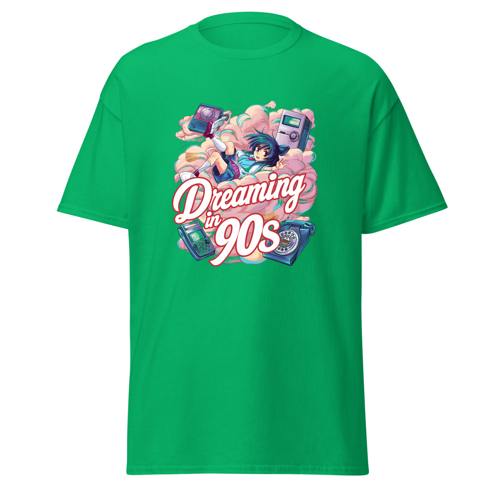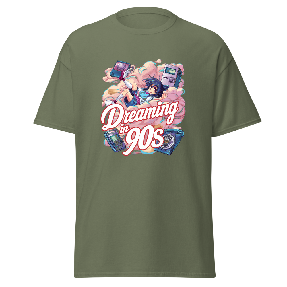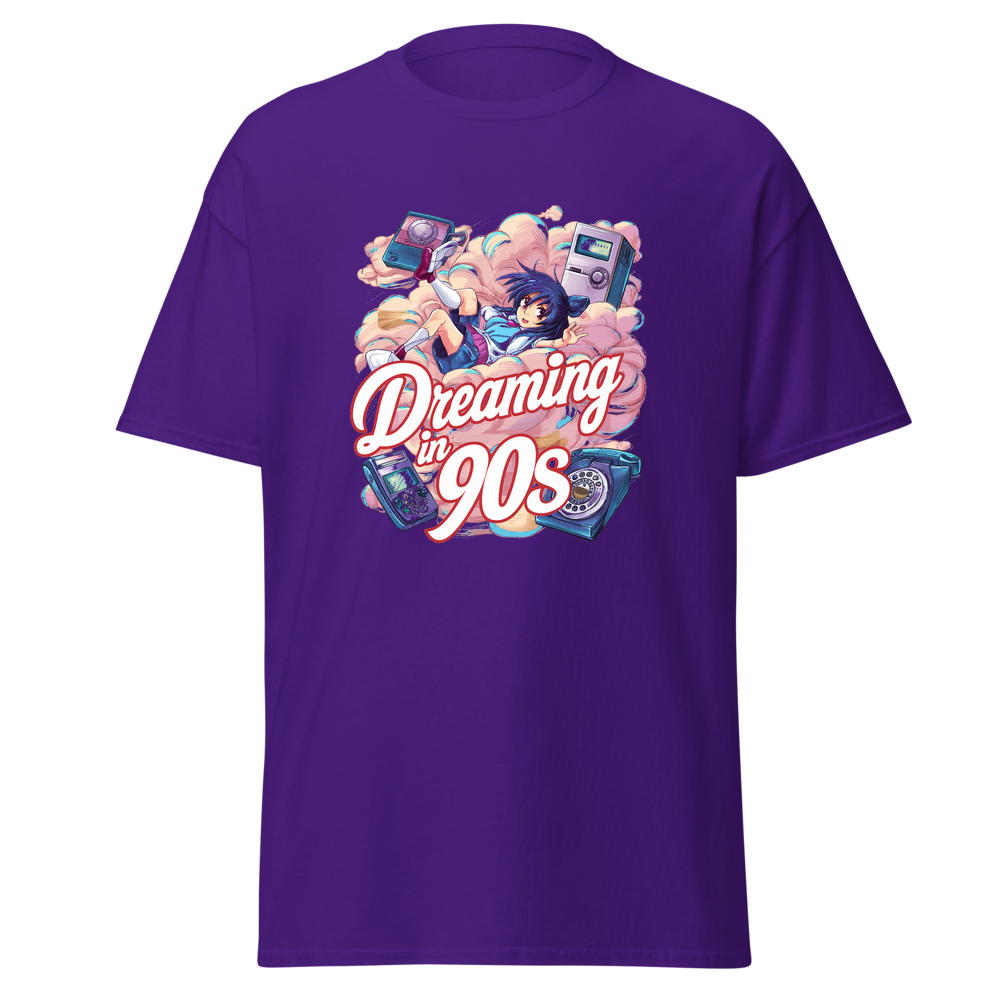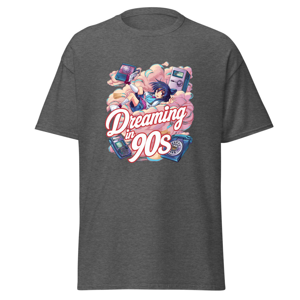 This tee features a dreamy anime character surrounded by fluffy clouds and retro 90s gadgets. Perfect for teens and anime lovers who adore a nostalgic twist!This t-shirt is everything you’ve dreamed of and more. It feels soft and lightweight, with the right amount of stretch. It’s comfortable and flattering for all. 100% combed and ring-spun cotton (Heather colors contain polyester) Fabric weight: 4.2 oz./yd.² (142 g/m²) Pre-shrunk fabric Side-seamed construction Shoulder-to-shoulder taping