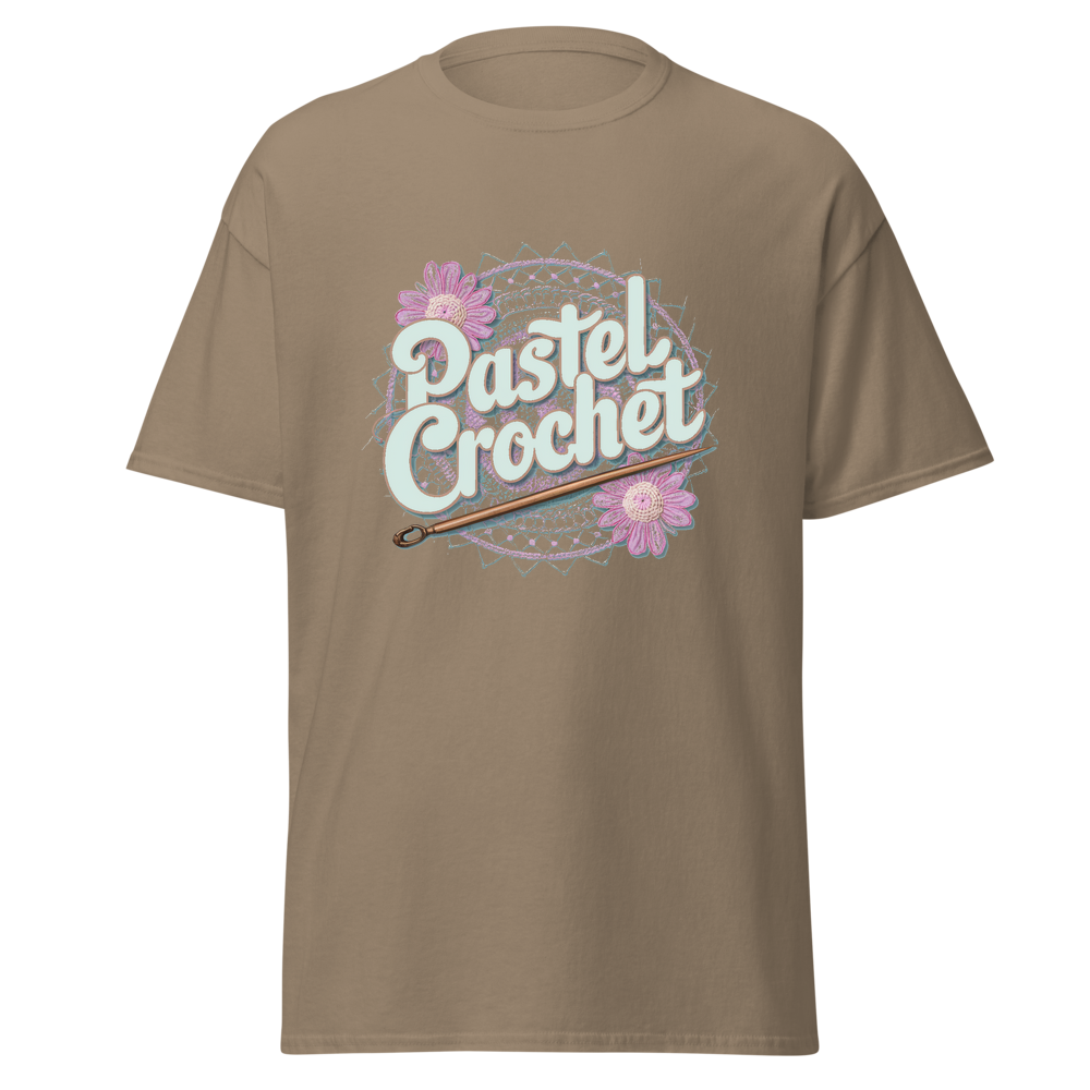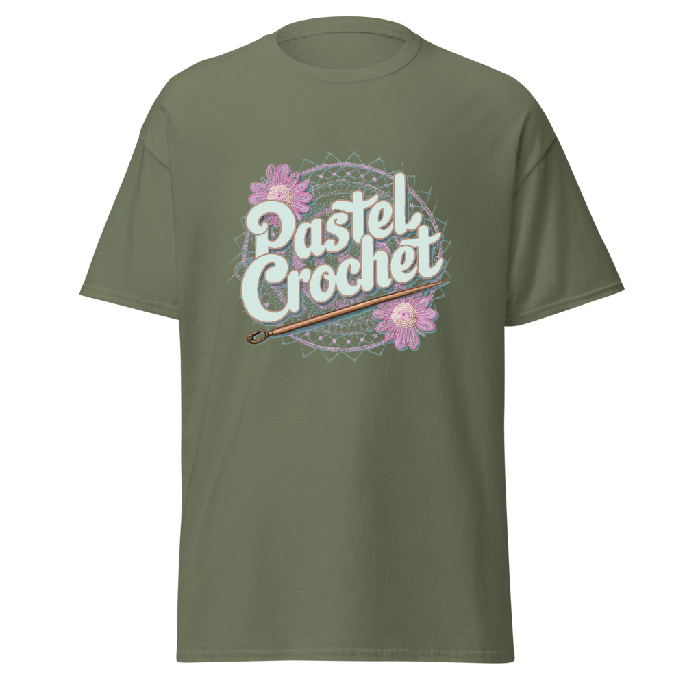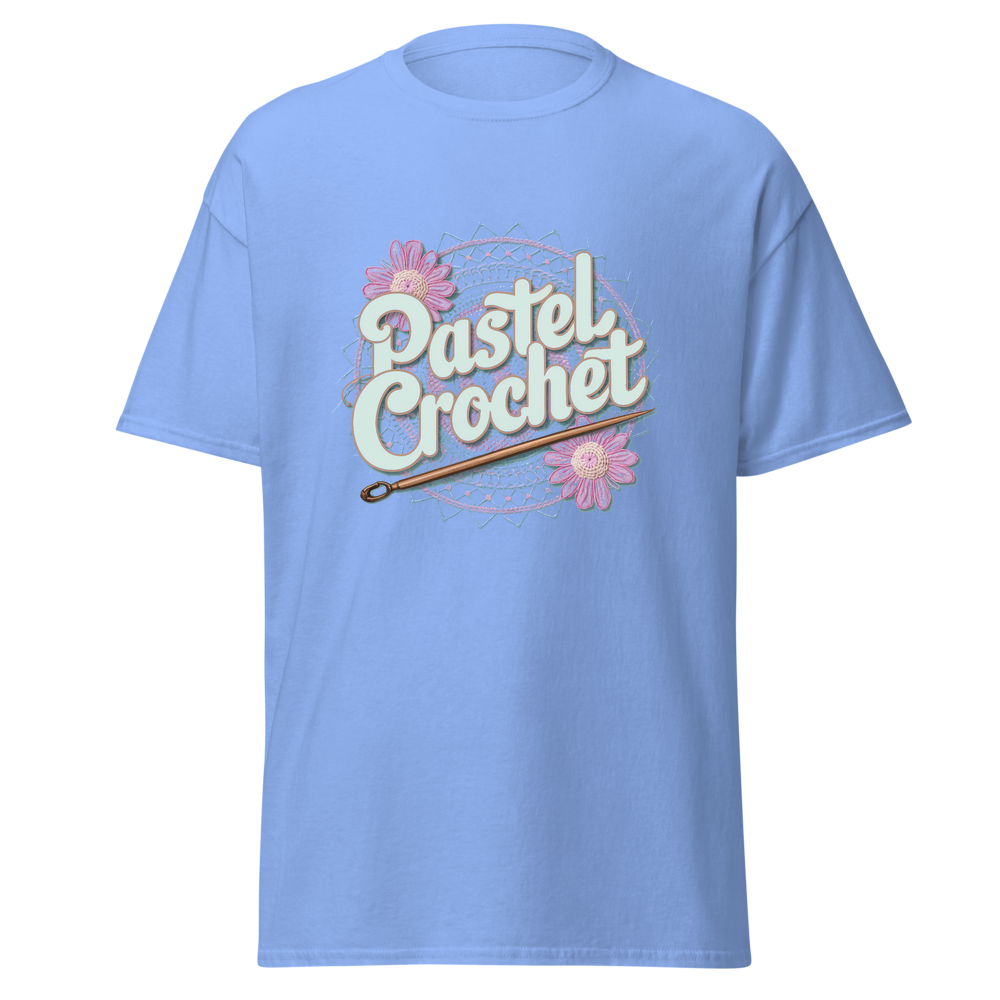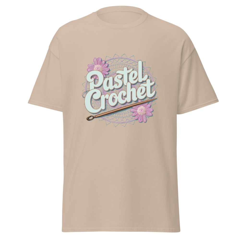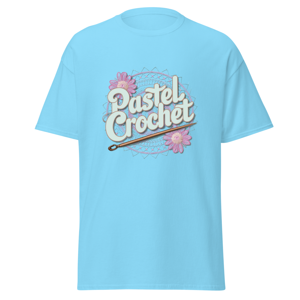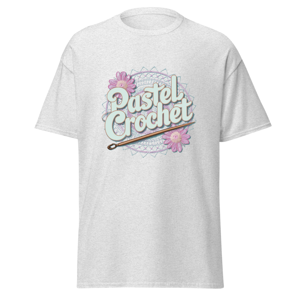 Celebrate the charm of timeless crochet with a neon pastel twist. This design features delicate crochet patterns, a vintage crochet needle, and lovely floral decorations, perfect for traditional craft lovers.This t-shirt is everything you’ve dreamed of and more. It feels soft and lightweight, with the right amount of stretch. It’s comfortable and flattering for all. 100% combed and ring-spun cotton (Heather colors contain polyester) Fabric weight: 4.2 oz./yd.² (142 g/m²) Pre-shrunk fabric Side-seamed construction Shoulder-to-shoulder taping