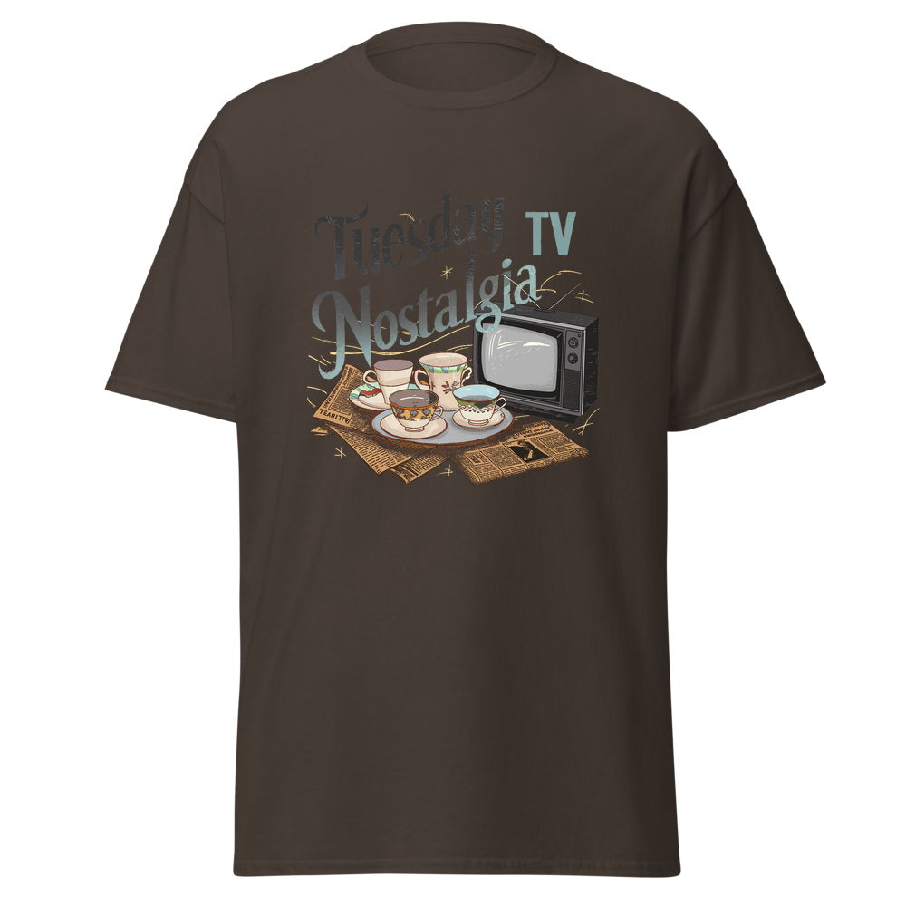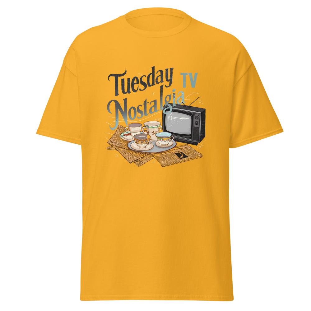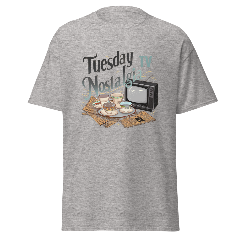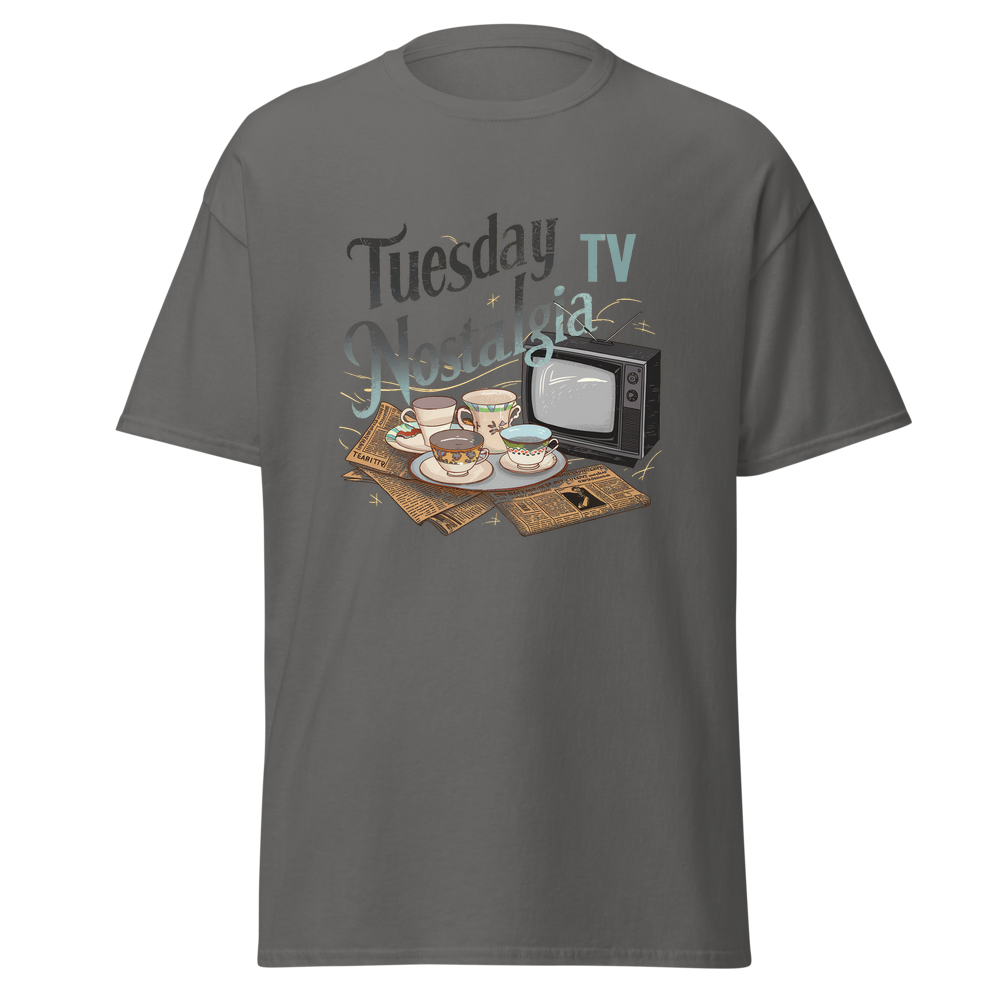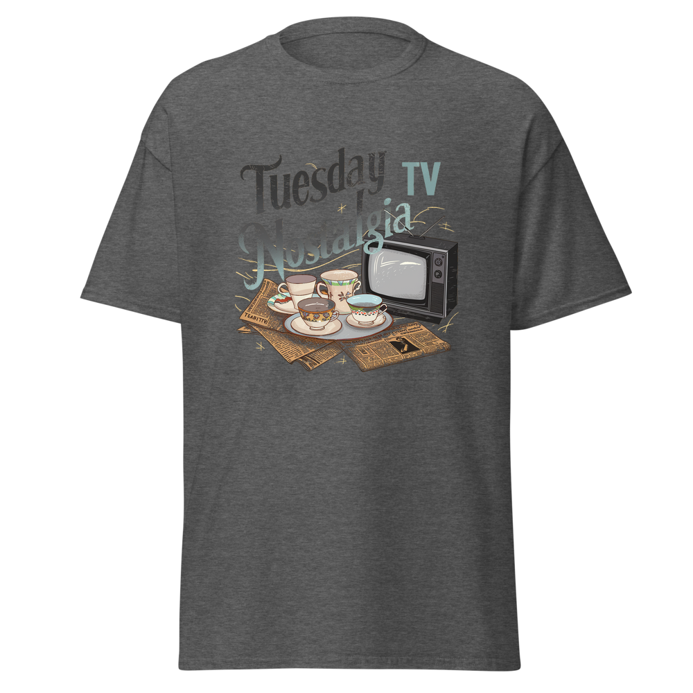 Take a trip down memory lane with this charming design featuring teacups, classic TVs, and vintage newspapers in a cozy kitchen setting. Perfect for those who love a nostalgic vibe.This t-shirt is everything you’ve dreamed of and more. It feels soft and lightweight, with the right amount of stretch. It’s comfortable and flattering for all. 100% combed and ring-spun cotton (Heather colors contain polyester) Fabric weight: 4.2 oz./yd.² (142 g/m²) Pre-shrunk fabric Side-seamed construction Shoulder-to-shoulder taping