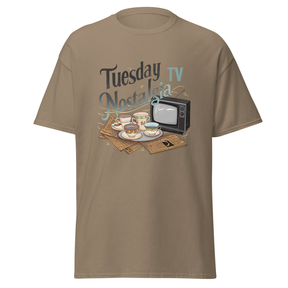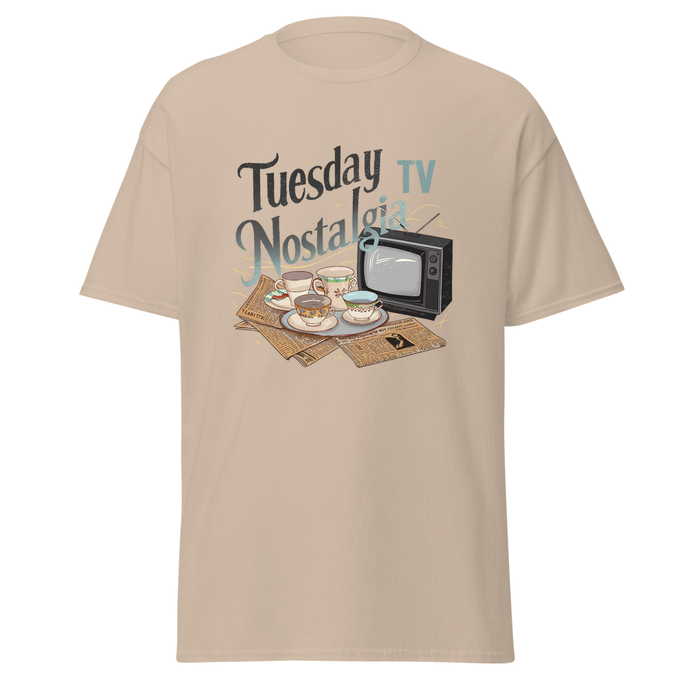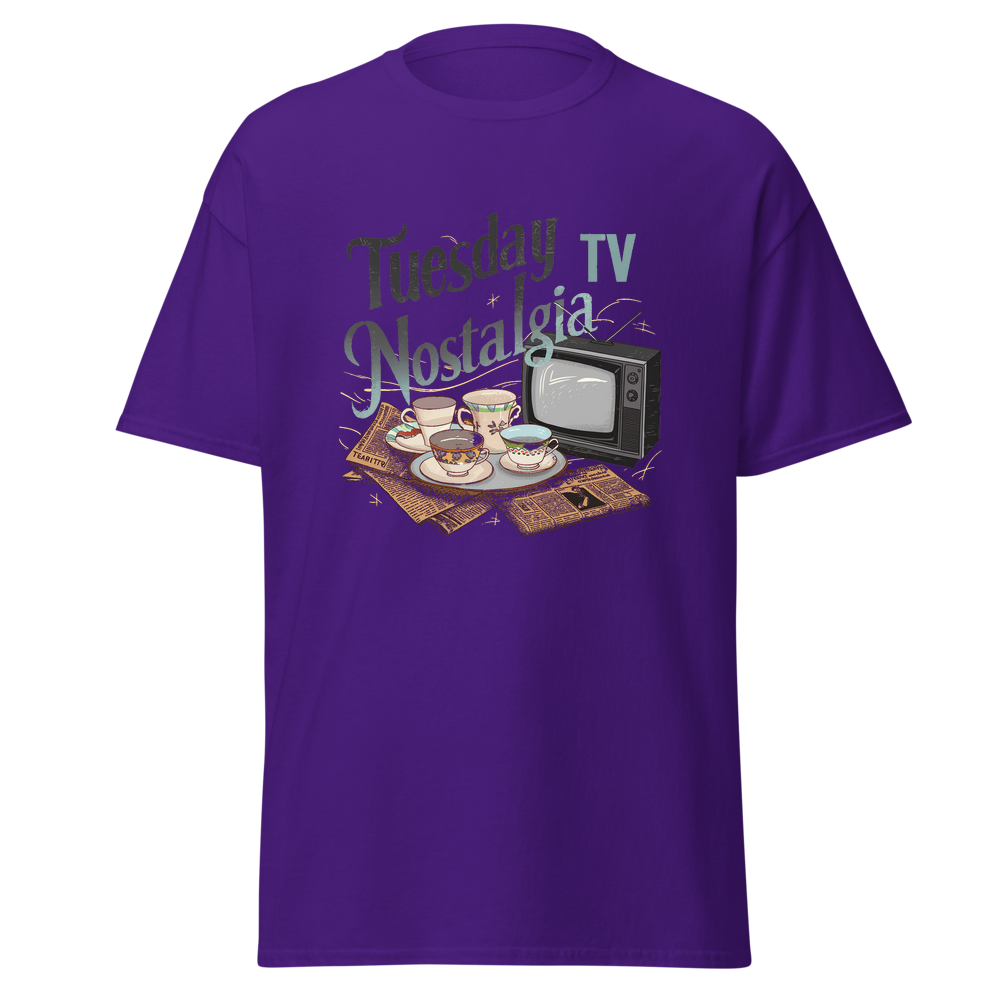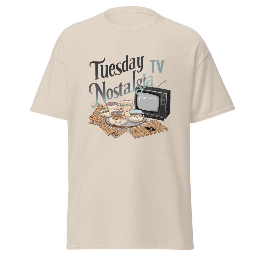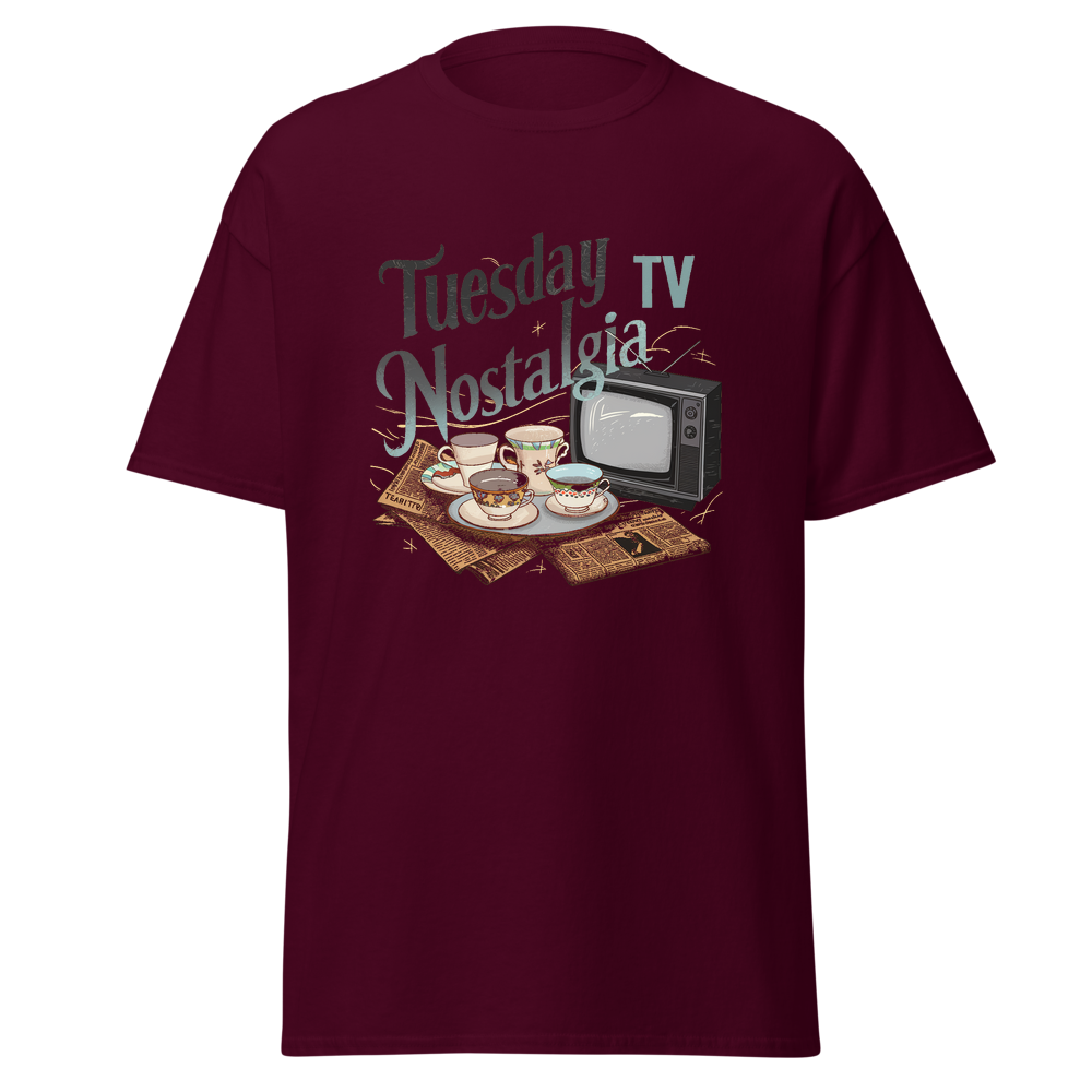Take a trip down memory lane with this charming design featuring teacups, classic TVs, and vintage newspapers in a cozy kitchen setting. Perfect for those who love a nostalgic vibe.This t-shirt is everything you’ve dreamed of and more. It feels soft and lightweight, with the right amount of stretch. It’s comfortable and flattering for all. 100% combed and ring-spun cotton (Heather colors contain polyester) Fabric weight: 4.2 oz./yd.² (142 g/m²) Pre-shrunk fabric Side-seamed construction Shoulder-to-shoulder taping