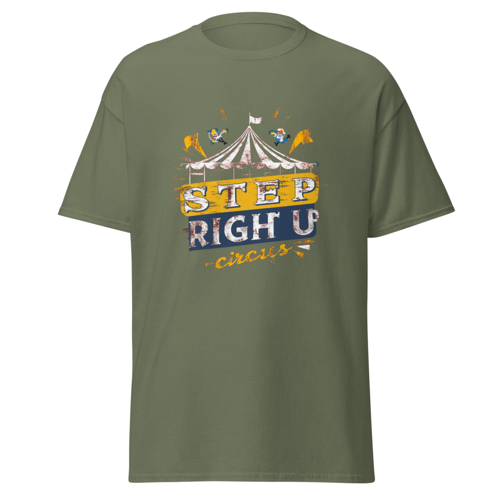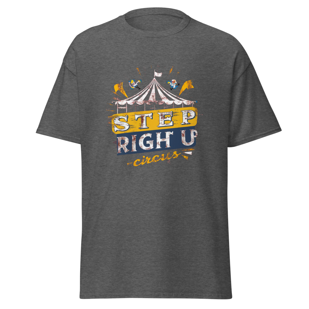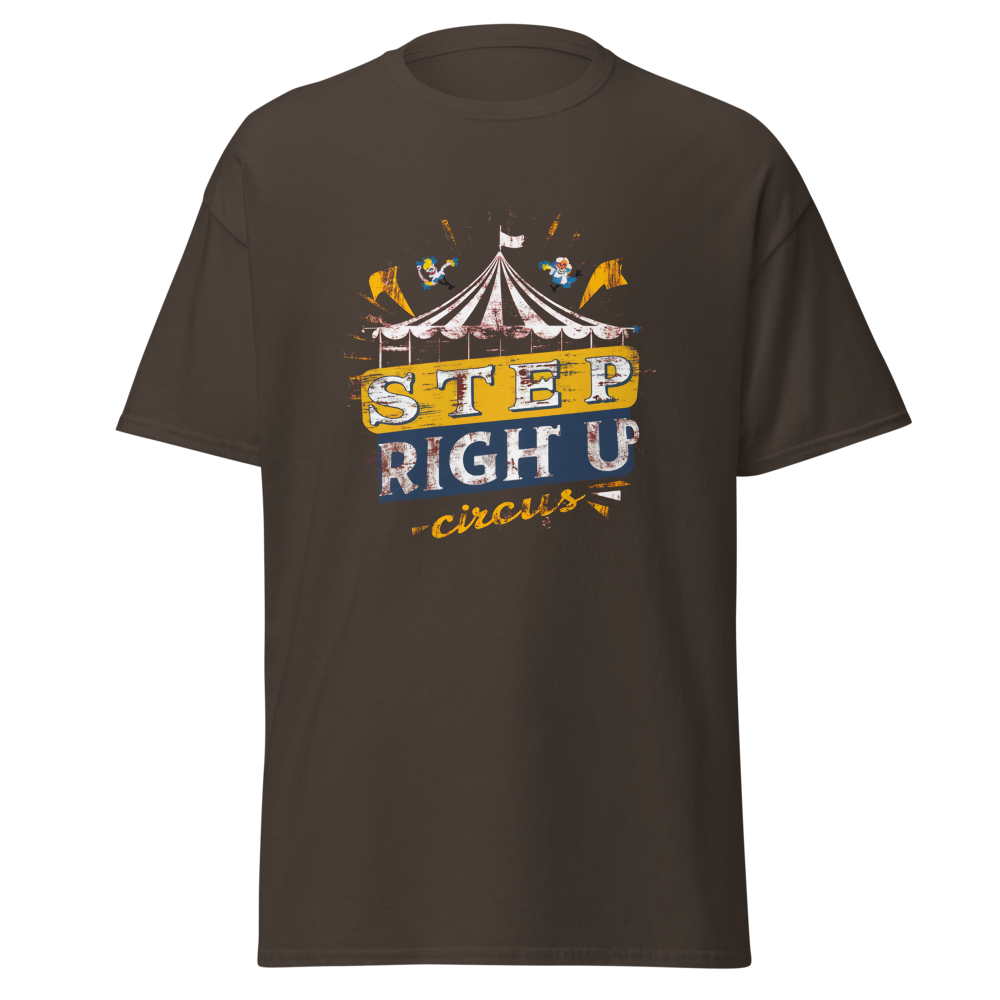 Step right into the past with this cool vintage circus t-shirt. Featuring a distressed graphic of a classic circus marquee, complete with a tent and playful clowns. Perfect for anyone who loves retro fashion and enjoys a bit of nostalgic fun.This t-shirt is everything you’ve dreamed of and more. It feels soft and lightweight, with the right amount of stretch. It’s comfortable and flattering for all. 100% combed and ring-spun cotton (Heather colors contain polyester) Fabric weight: 4.2 oz./yd.² (142 g/m²) Pre-shrunk fabric Side-seamed construction Shoulder-to-shoulder taping