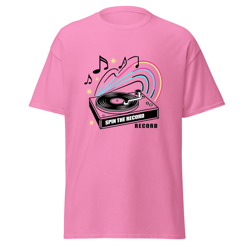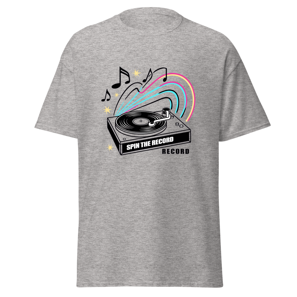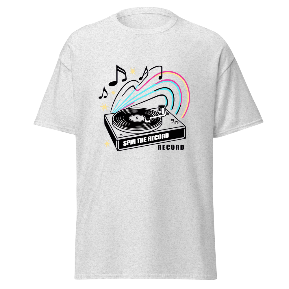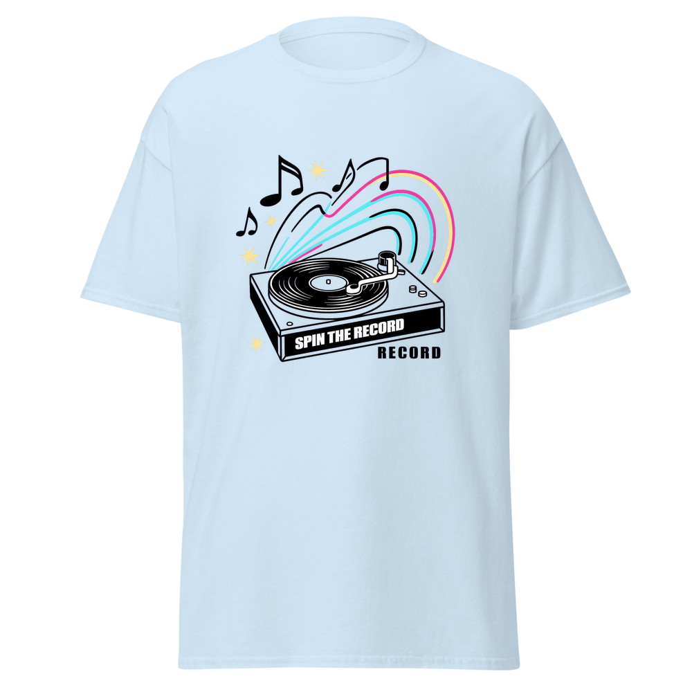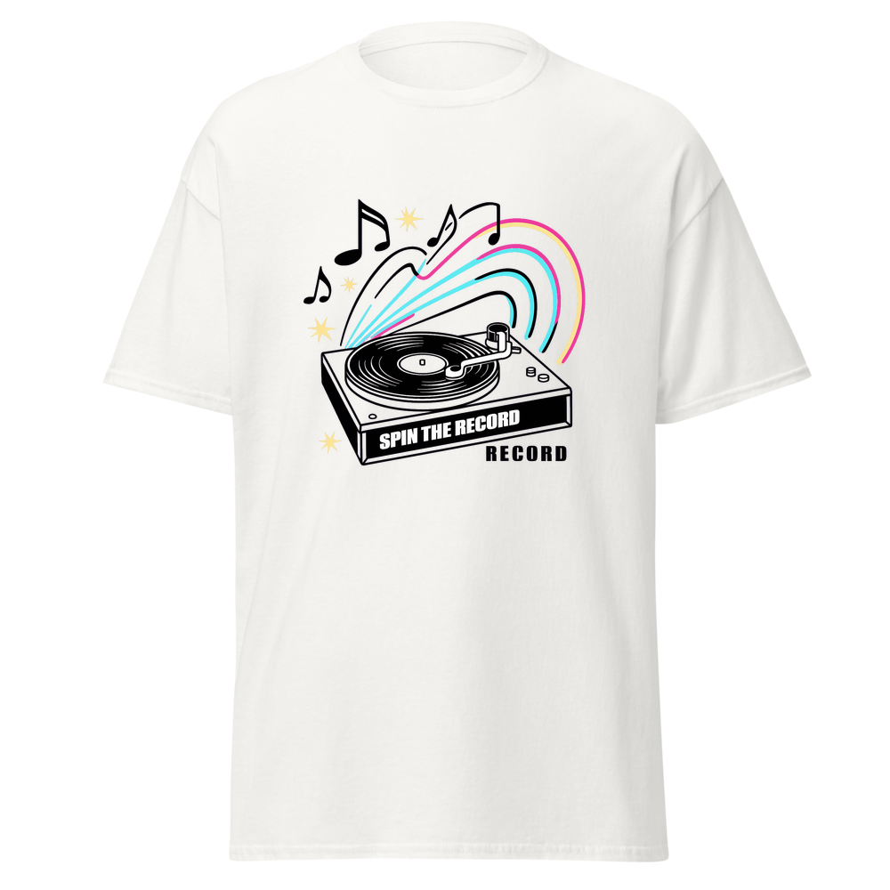 This tee features a vintage vinyl record player with lively musical notes dancing around and colorful sound waves radiating out. Perfect for music lovers and anyone who appreciates a touch of retro charm.This t-shirt is everything you’ve dreamed of and more. It feels soft and lightweight, with the right amount of stretch. It’s comfortable and flattering for all. 100% combed and ring-spun cotton (Heather colors contain polyester) Fabric weight: 4.2 oz./yd.² (142 g/m²) Pre-shrunk fabric Side-seamed construction Shoulder-to-shoulder taping