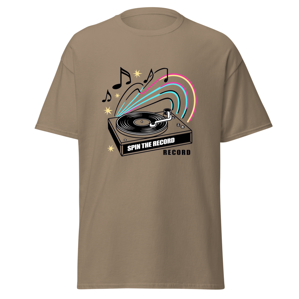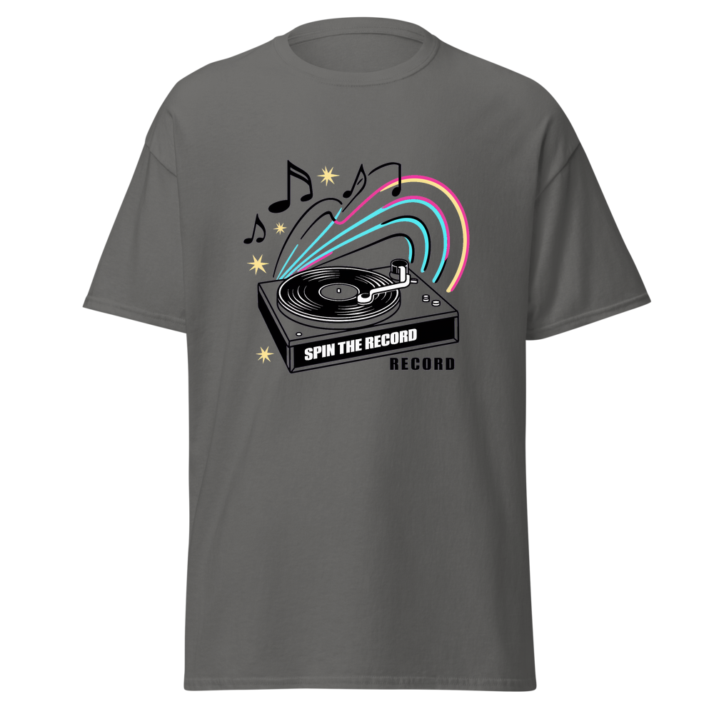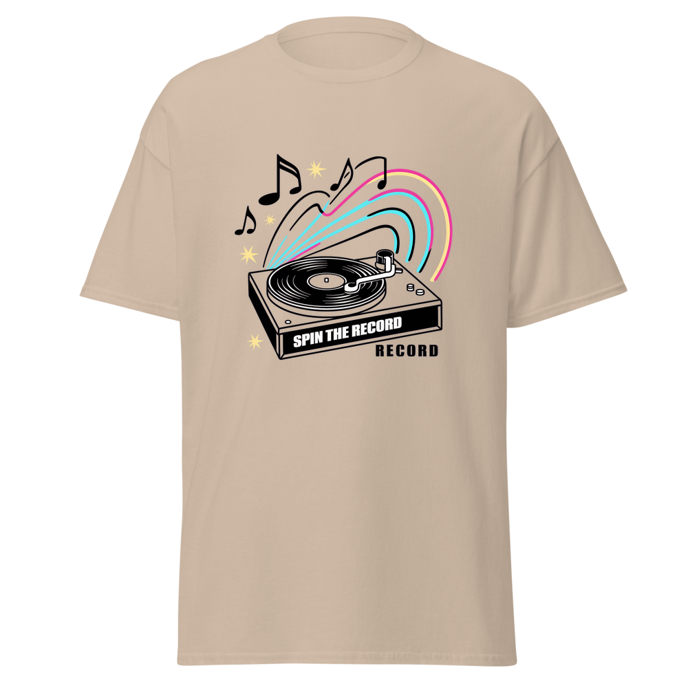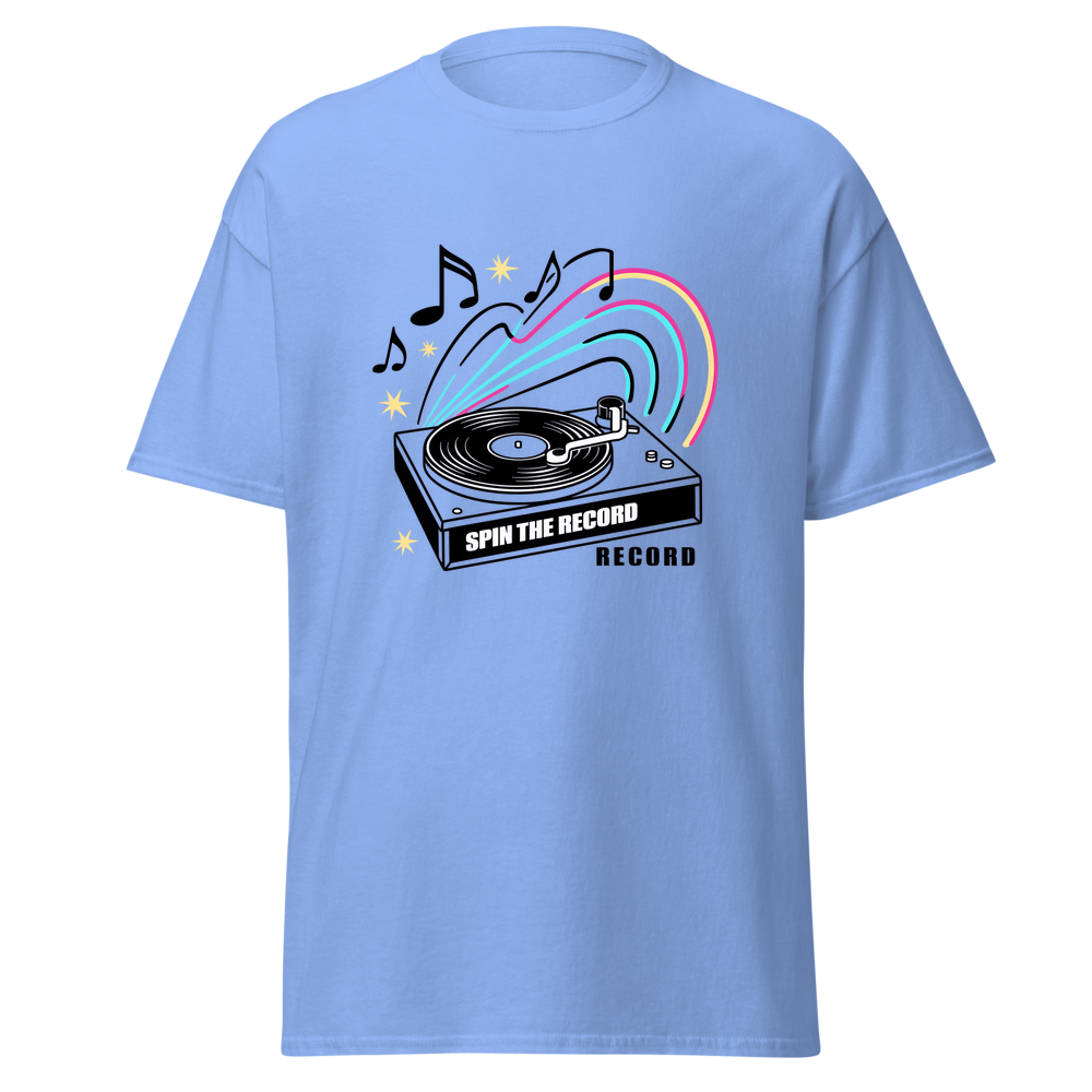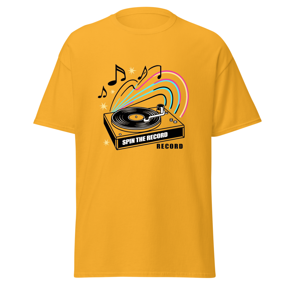 This tee features a vintage vinyl record player with lively musical notes dancing around and colorful sound waves radiating out. Perfect for music lovers and anyone who appreciates a touch of retro charm.This t-shirt is everything you’ve dreamed of and more. It feels soft and lightweight, with the right amount of stretch. It’s comfortable and flattering for all. 100% combed and ring-spun cotton (Heather colors contain polyester) Fabric weight: 4.2 oz./yd.² (142 g/m²) Pre-shrunk fabric Side-seamed construction Shoulder-to-shoulder taping