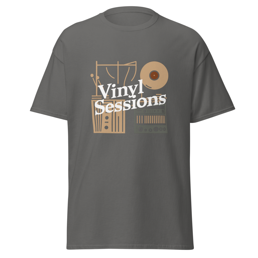 Step back in time with this cool design featuring a vintage studio setup with vinyl records and classic sound gear. Perfect for vinyl enthusiasts and anyone who loves a retro vibe.This t-shirt is everything you’ve dreamed of and more. It feels soft and lightweight, with the right amount of stretch. It’s comfortable and flattering for all. 100% combed and ring-spun cotton (Heather colors contain polyester) Fabric weight: 4.2 oz./yd.² (142 g/m²) Pre-shrunk fabric Side-seamed construction Shoulder-to-shoulder taping