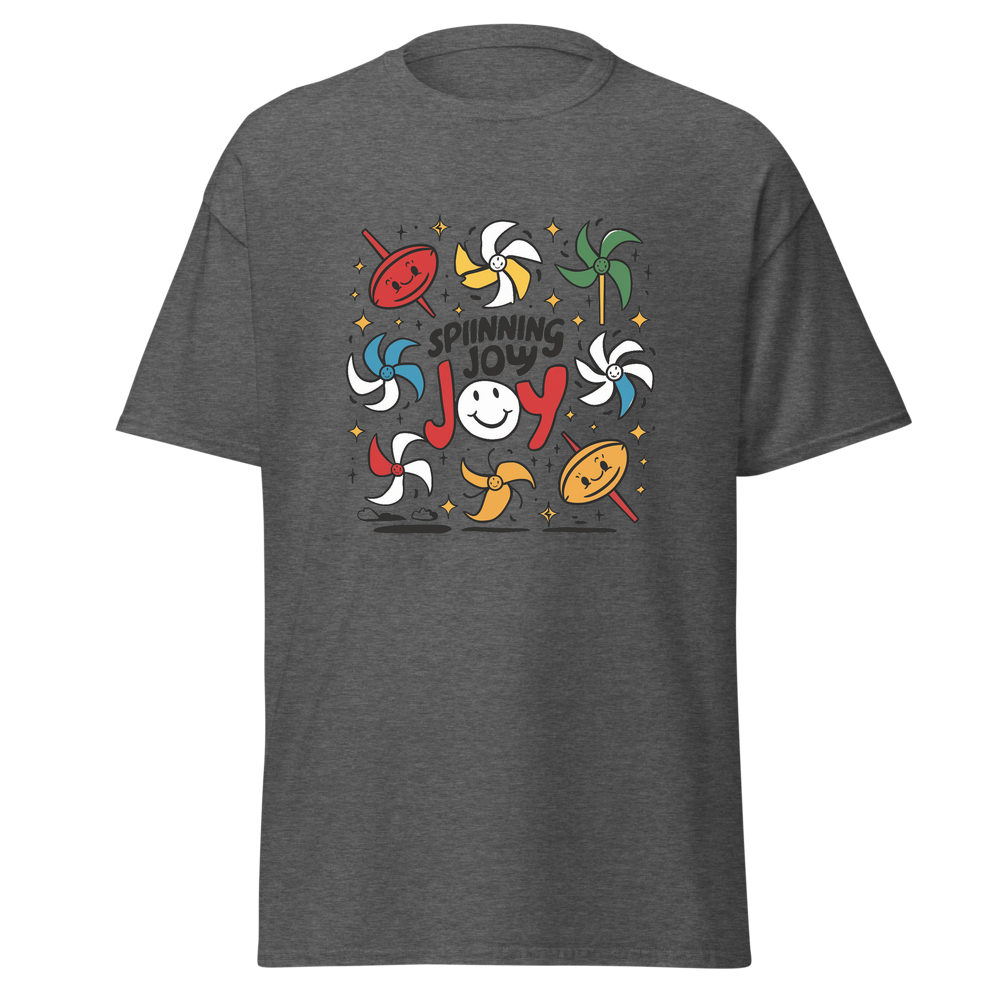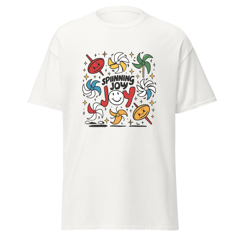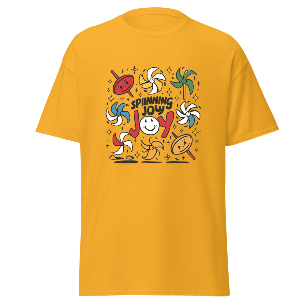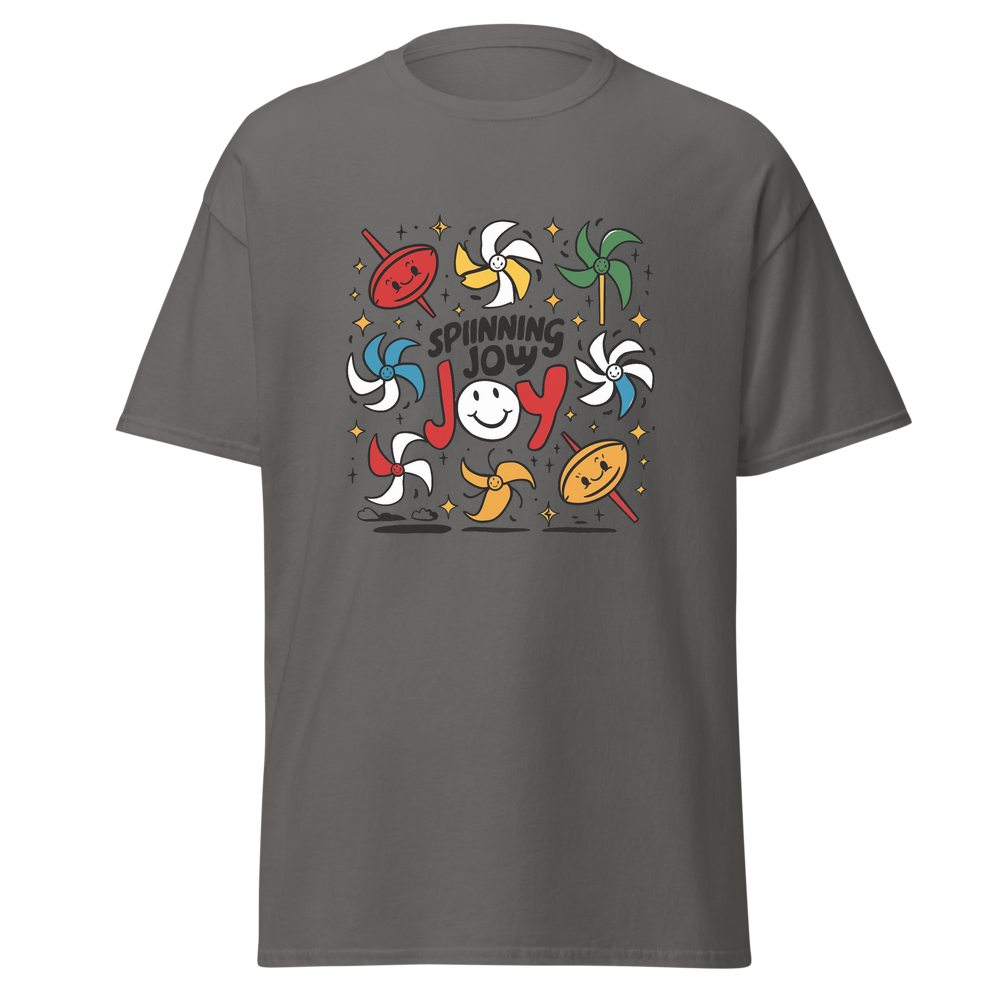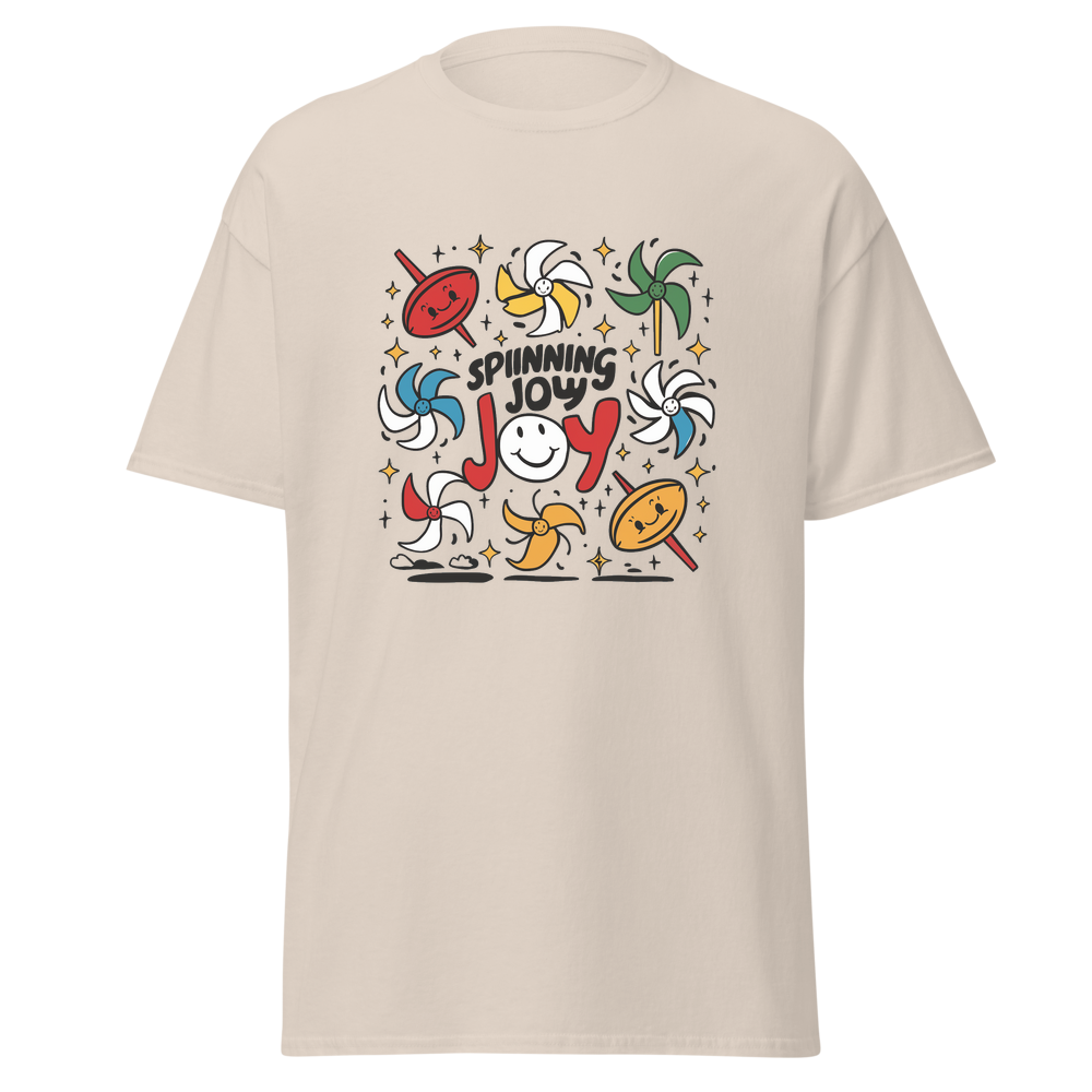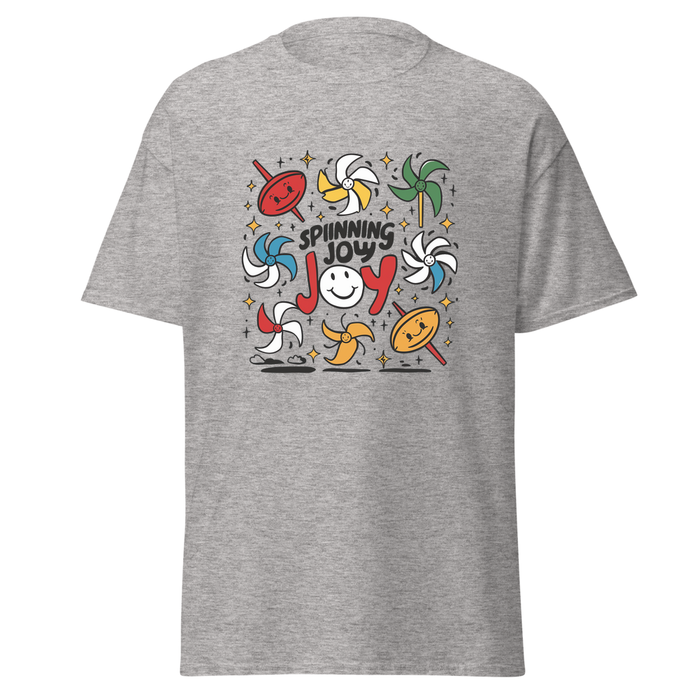Bring back the playful charm of old toys with this delightful design featuring cartoon spinning tops and pinwheels with smiling faces, surrounded by stars and sparkles. A perfect pick for kids and those young at heart.This t-shirt is everything you’ve dreamed of and more. It feels soft and lightweight, with the right amount of stretch. It’s comfortable and flattering for all. 100% combed and ring-spun cotton (Heather colors contain polyester) Fabric weight: 4.2 oz./yd.² (142 g/m²) Pre-shrunk fabric Side-seamed construction Shoulder-to-shoulder taping